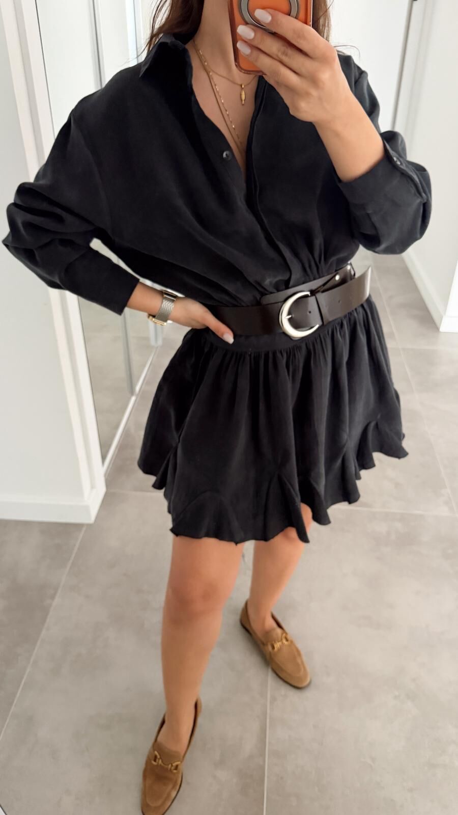 Antrasit Yıkamalı Kemerli Elbise