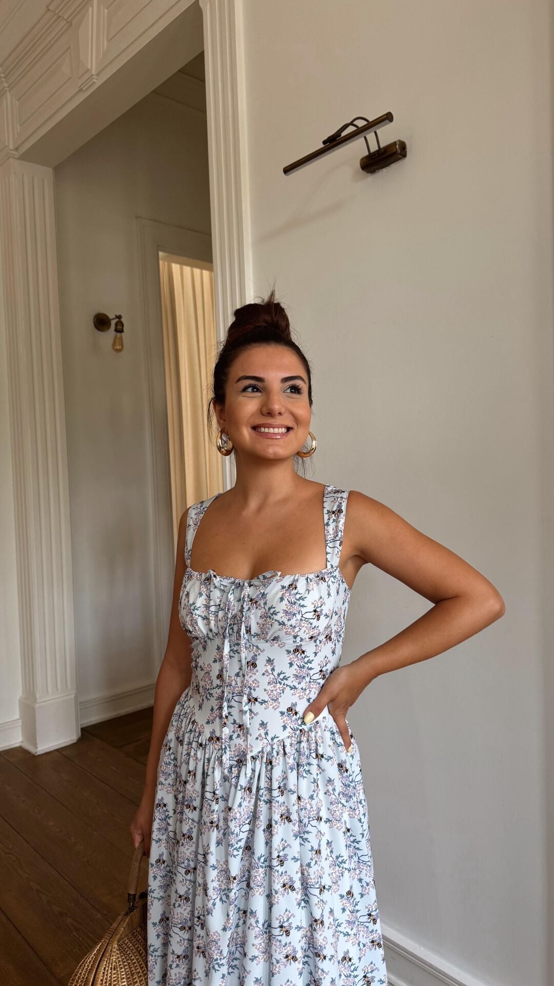 Arı Baskı Mavi Elbise