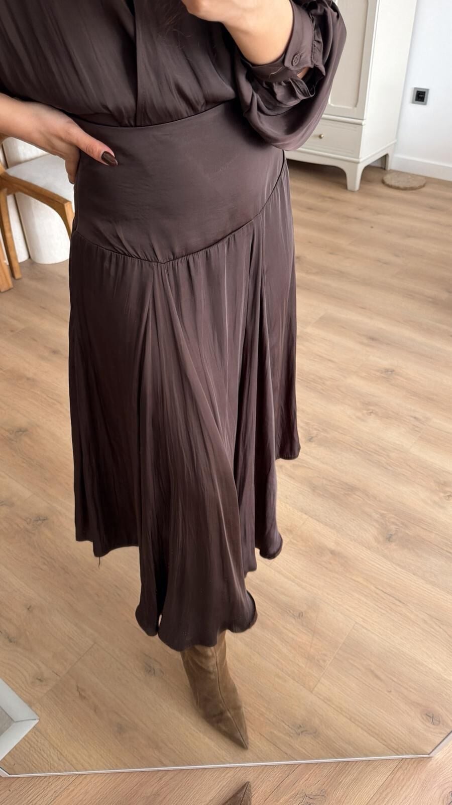 Asimetrik Saten Etek Kahve