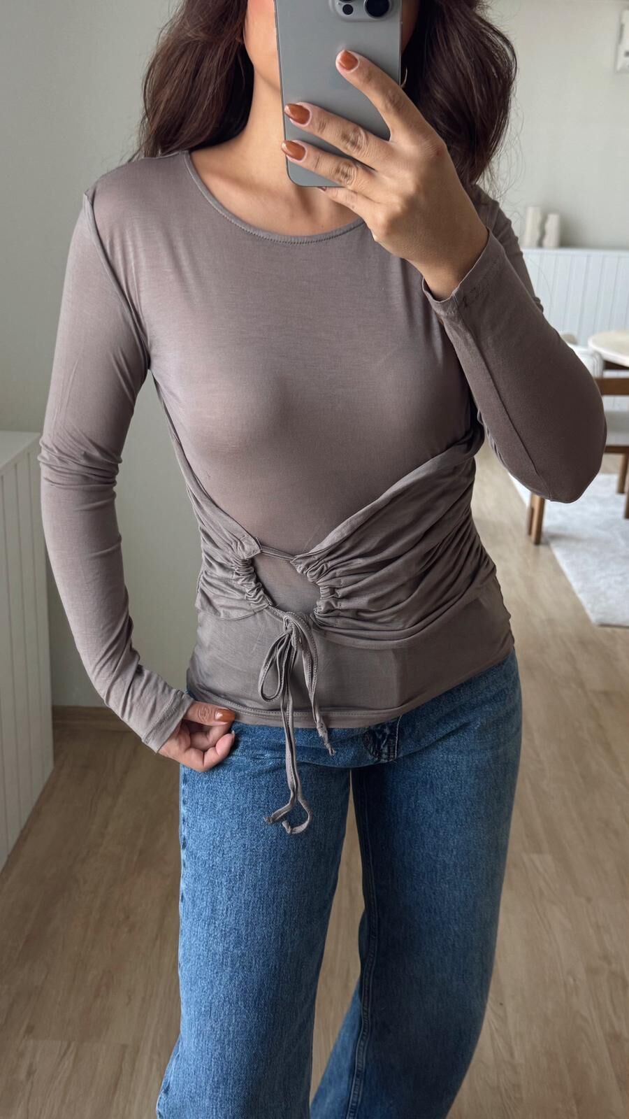 Bağlamalı transparan Bluz Koyu Bej