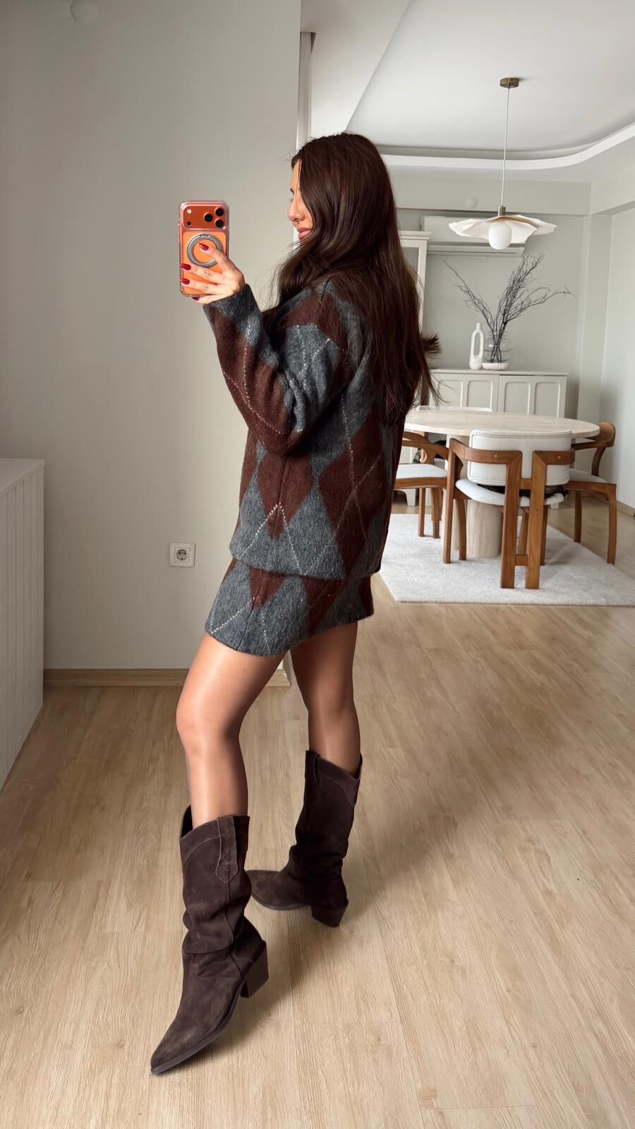 Baklava Etek Takım Gri