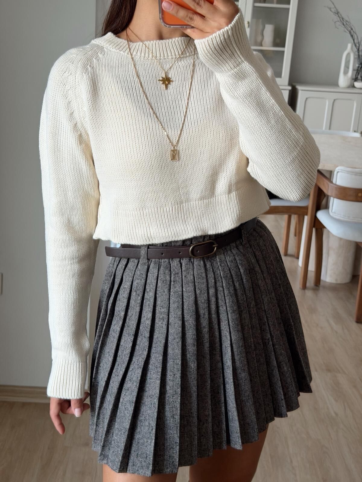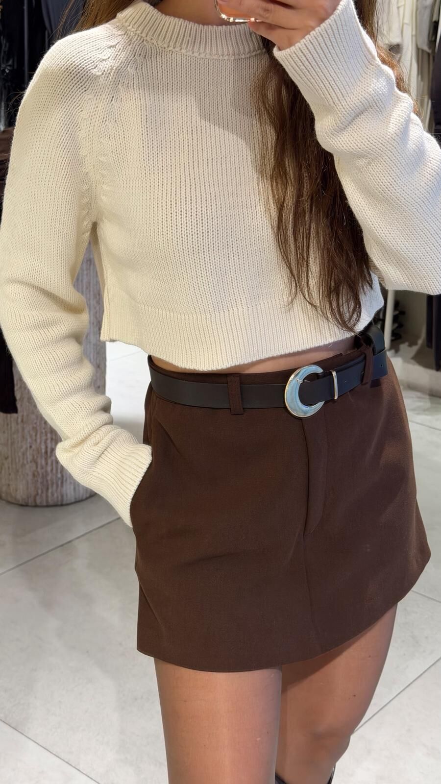 Basic Crop Örgü Kazak Krem