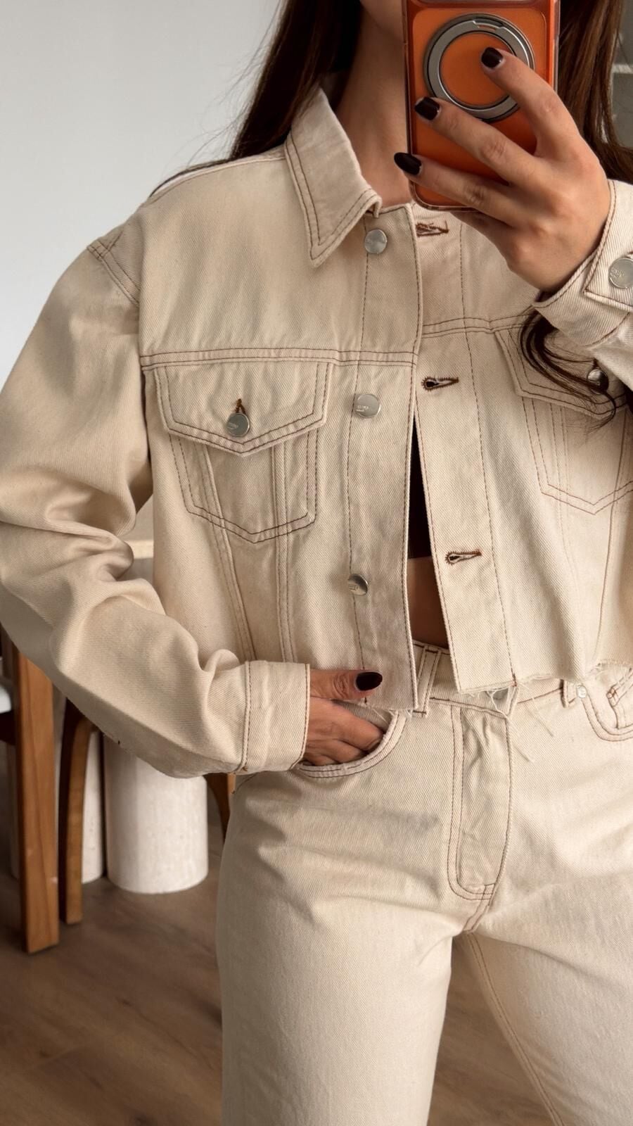 Basic Krem Denim Crop