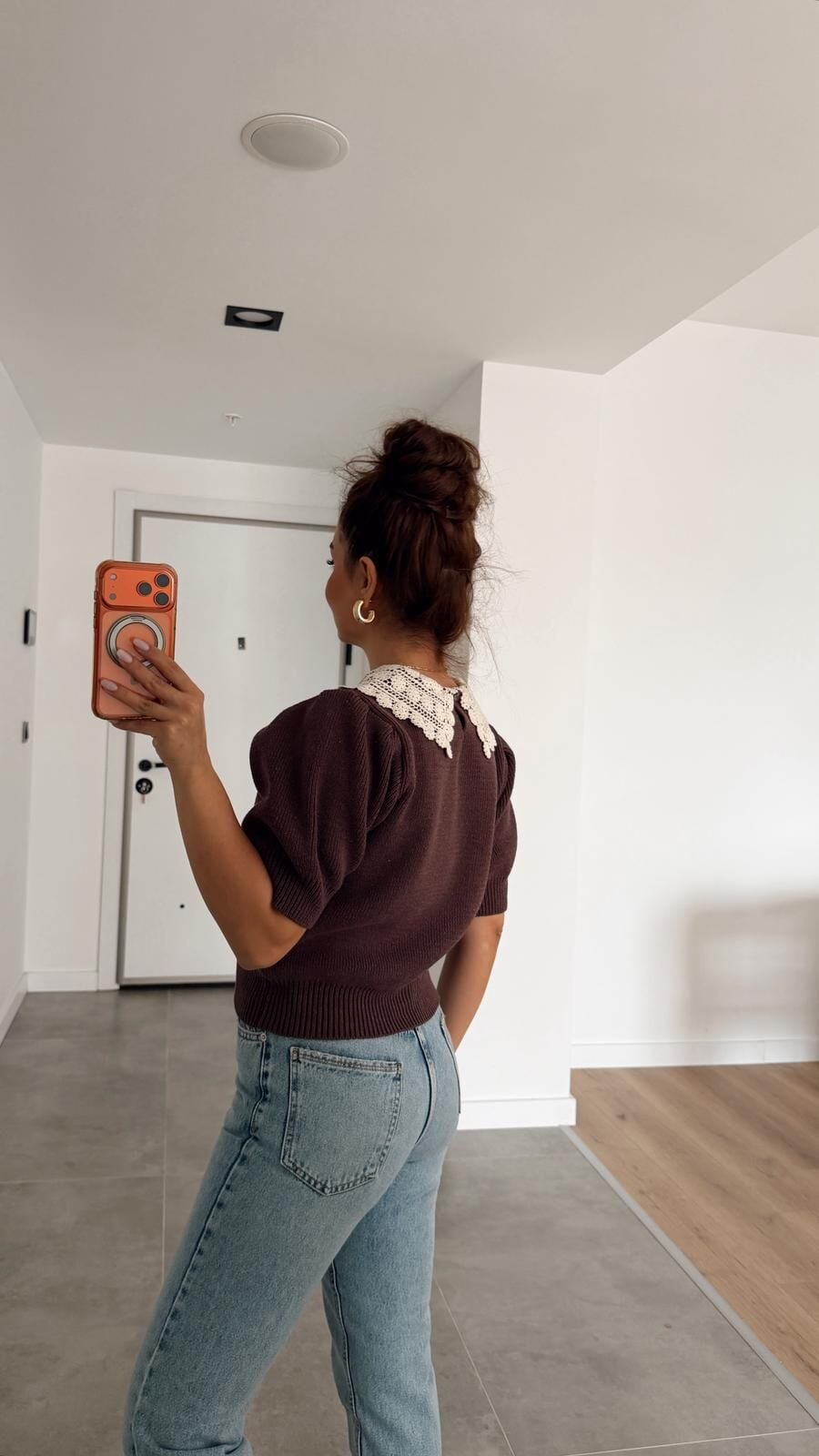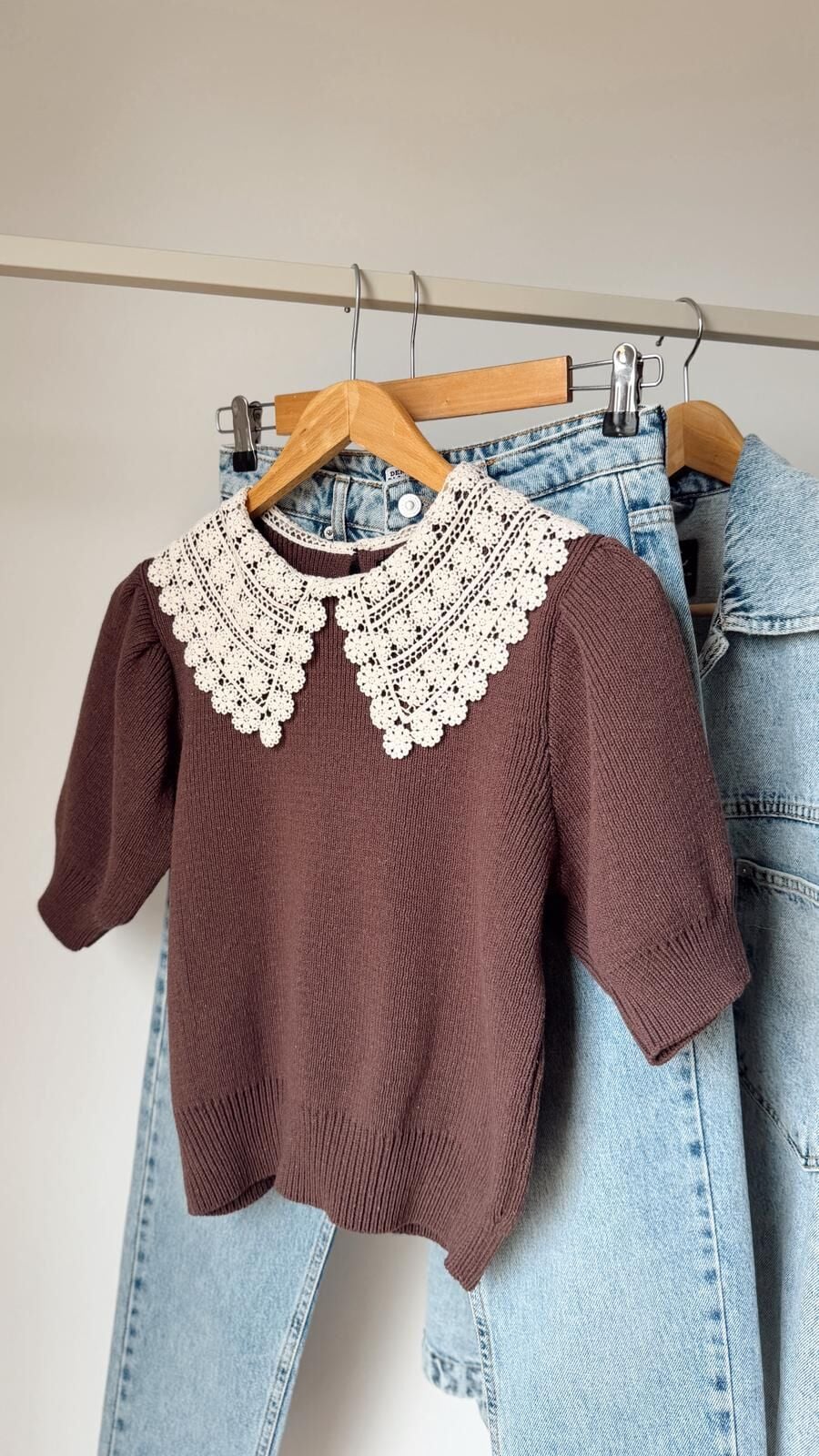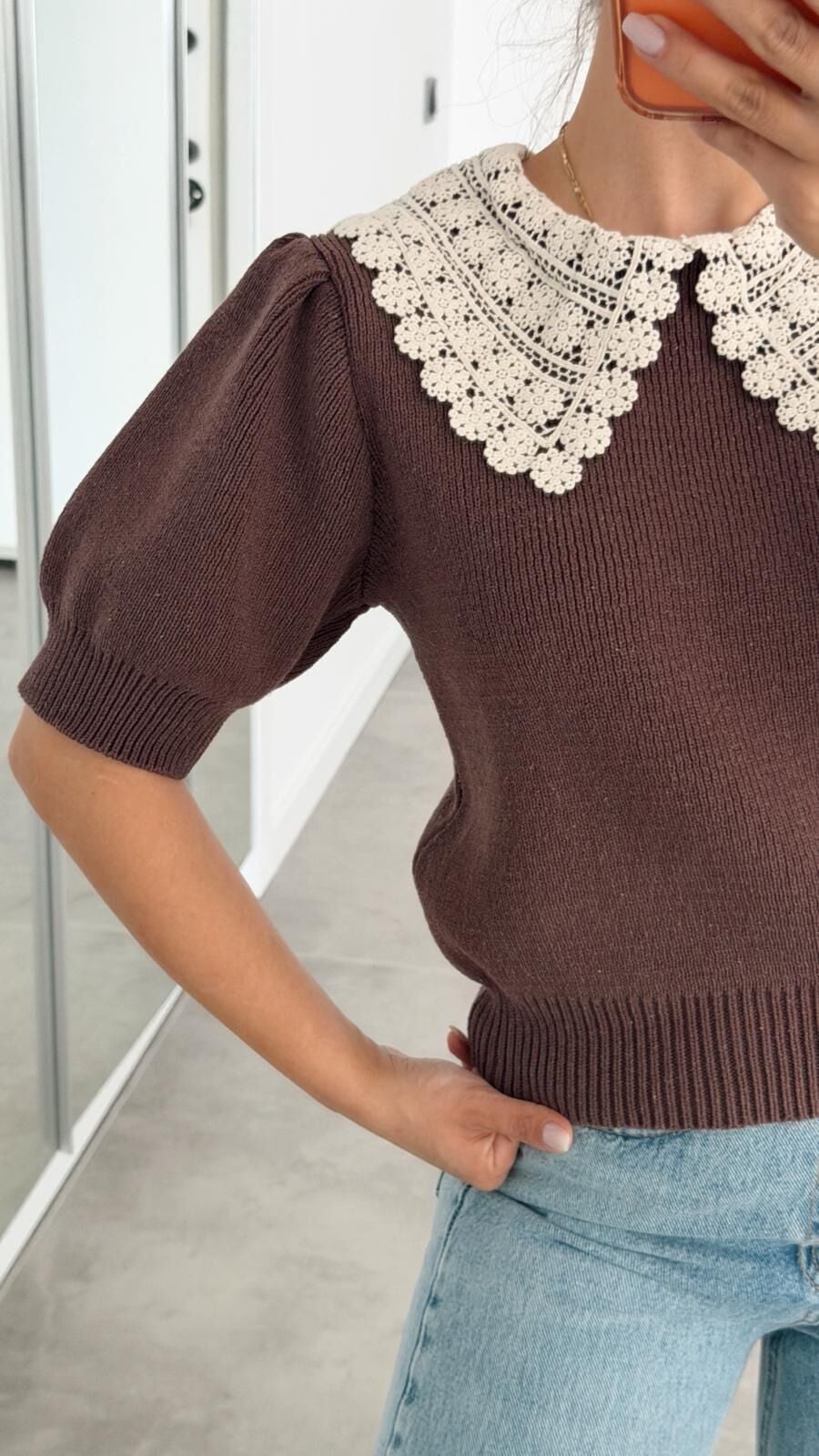Bebe Yakalı Kısa Kol Kazak Kahve
