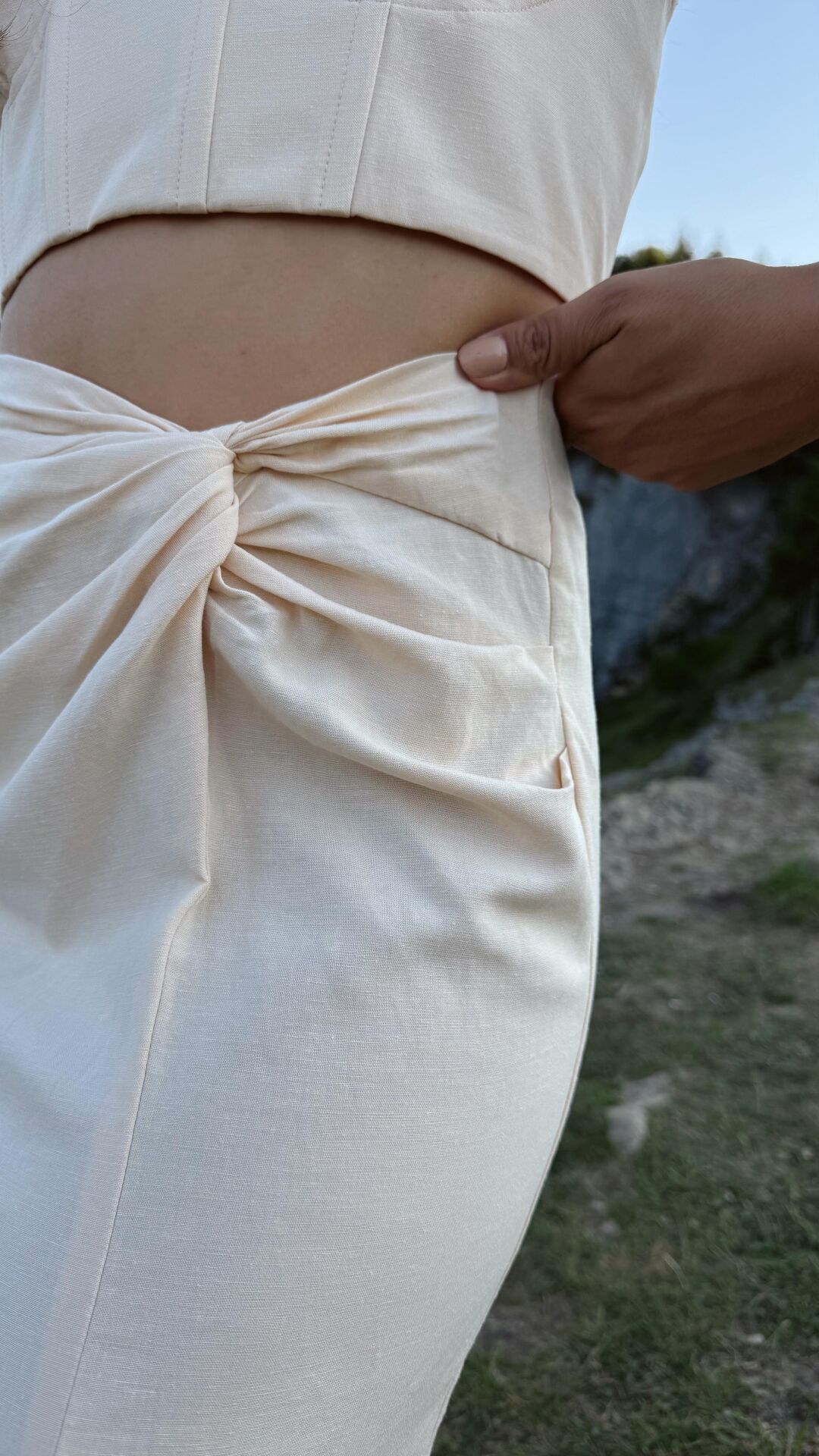 Bej Büzgülü Detay Etek