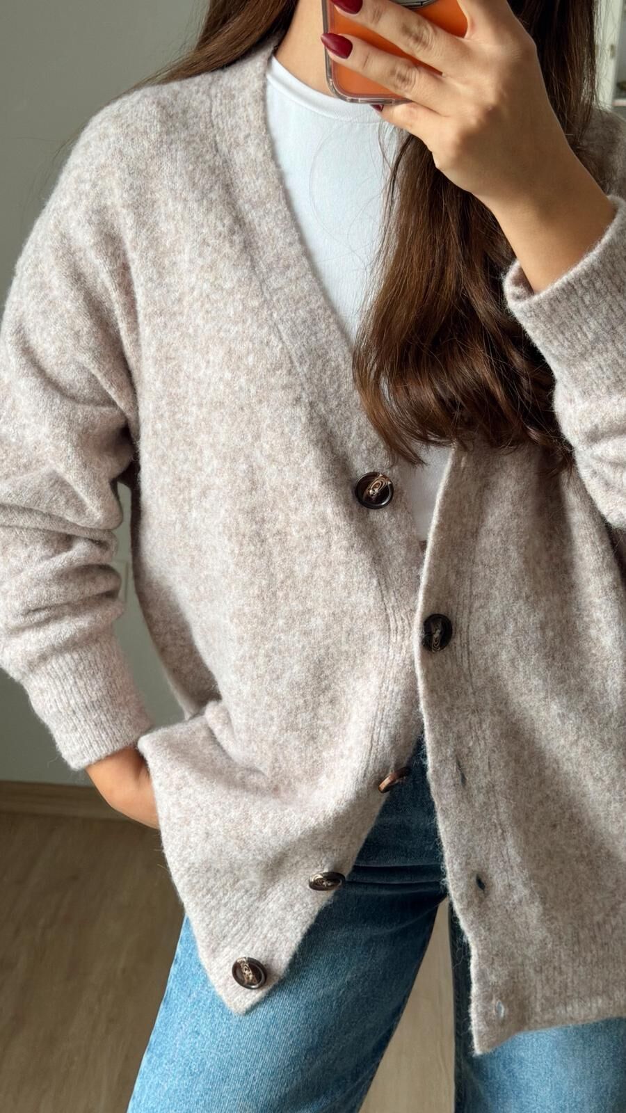 Bej Kahve Düğme Hırka