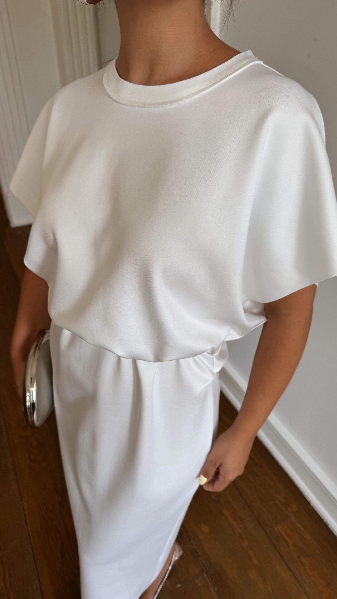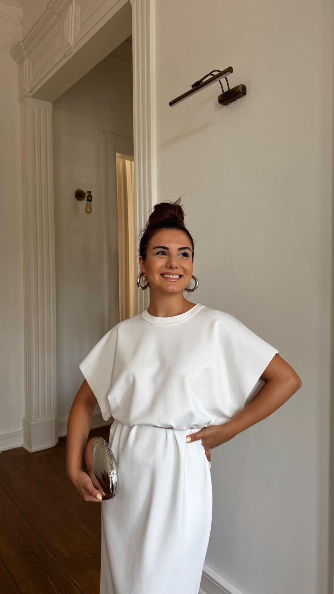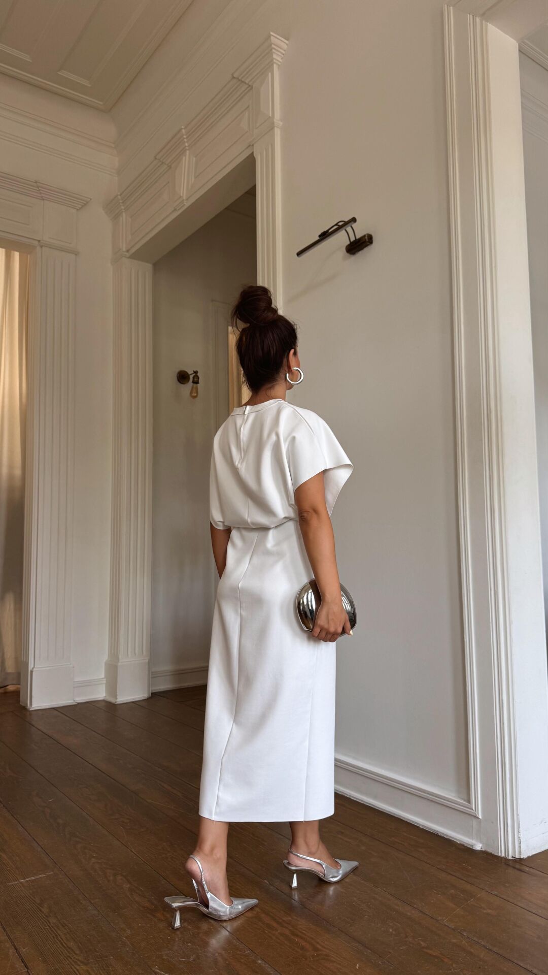 Bel Drapeli Beyaz Elbise