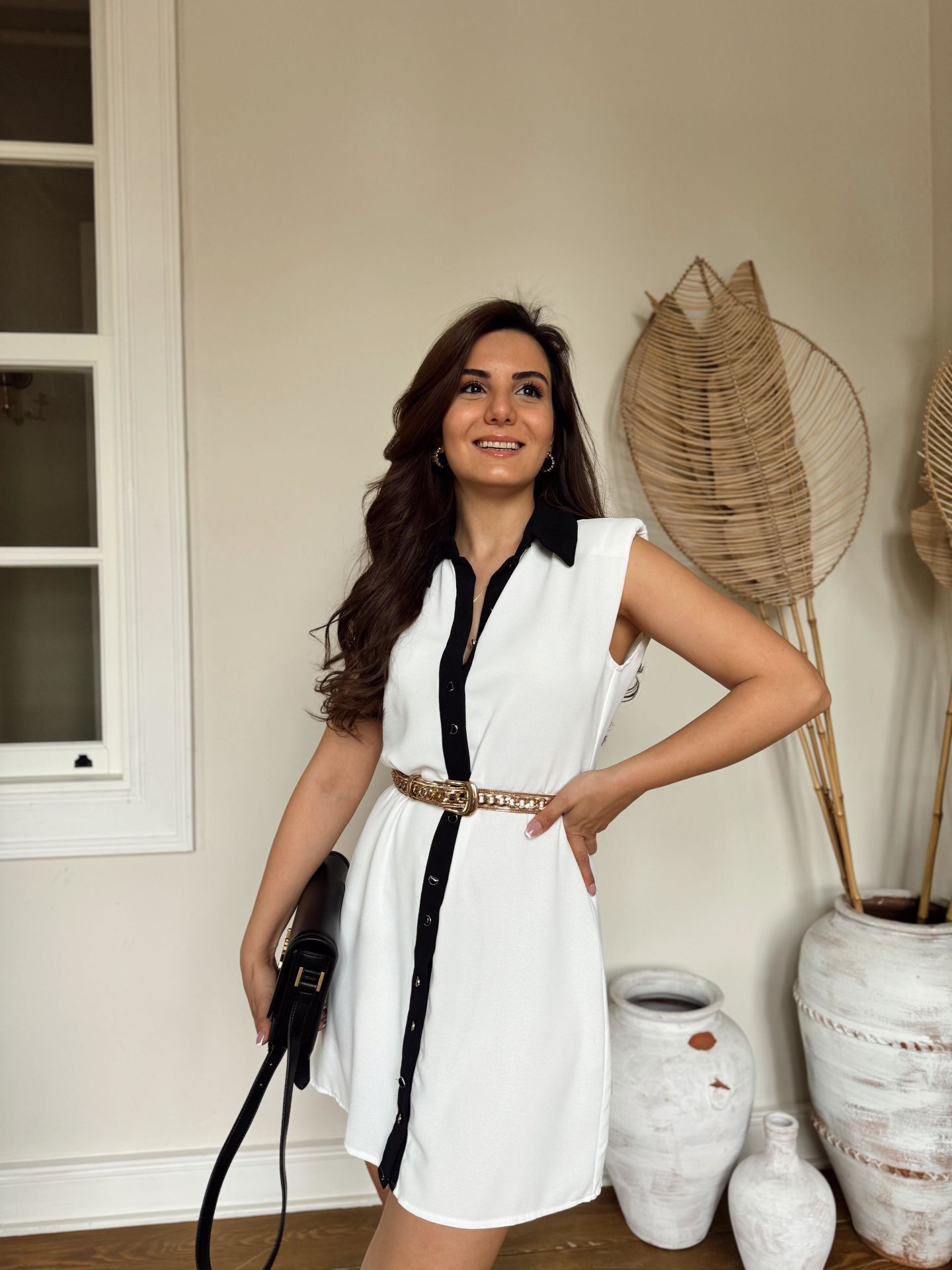 Beyaz Vatkalı Elbise