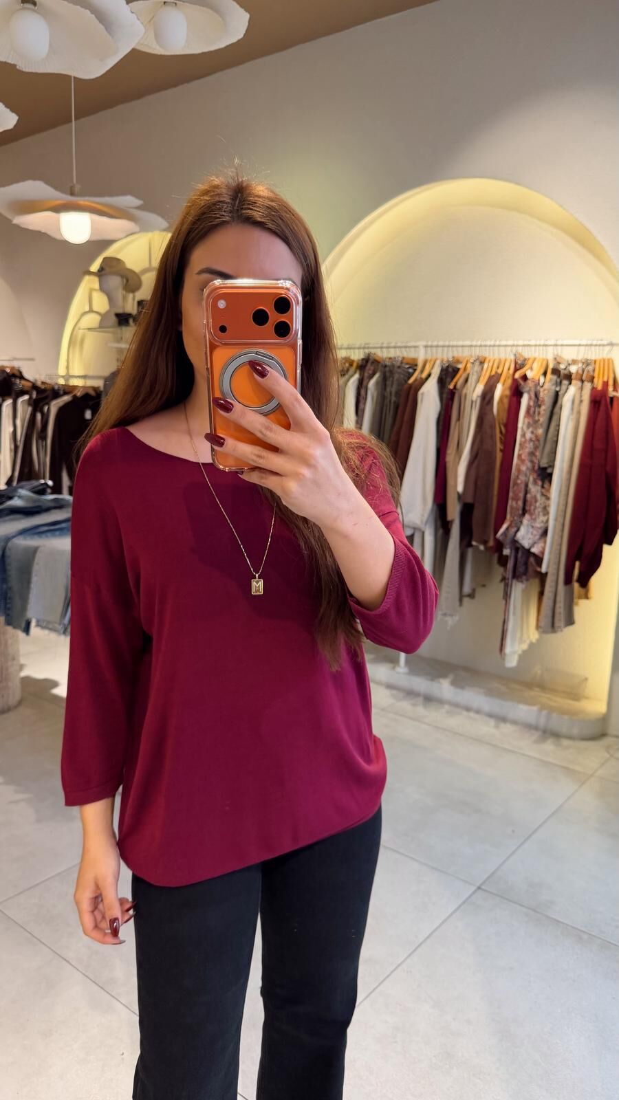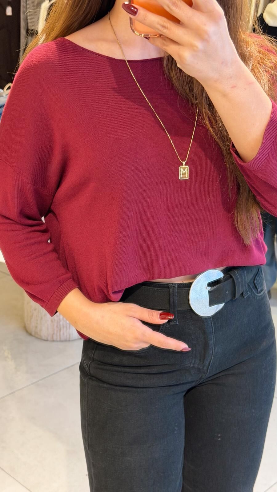 Bisiklet Yaka İnce Bluz Bordo