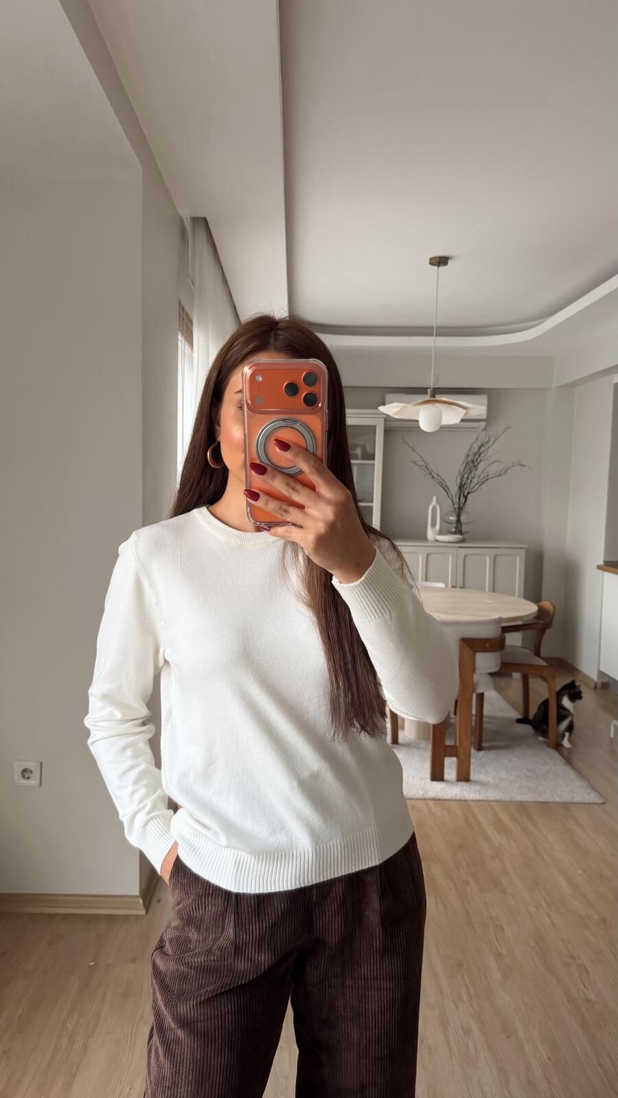 Bisiklet Yaka Triko Ekru