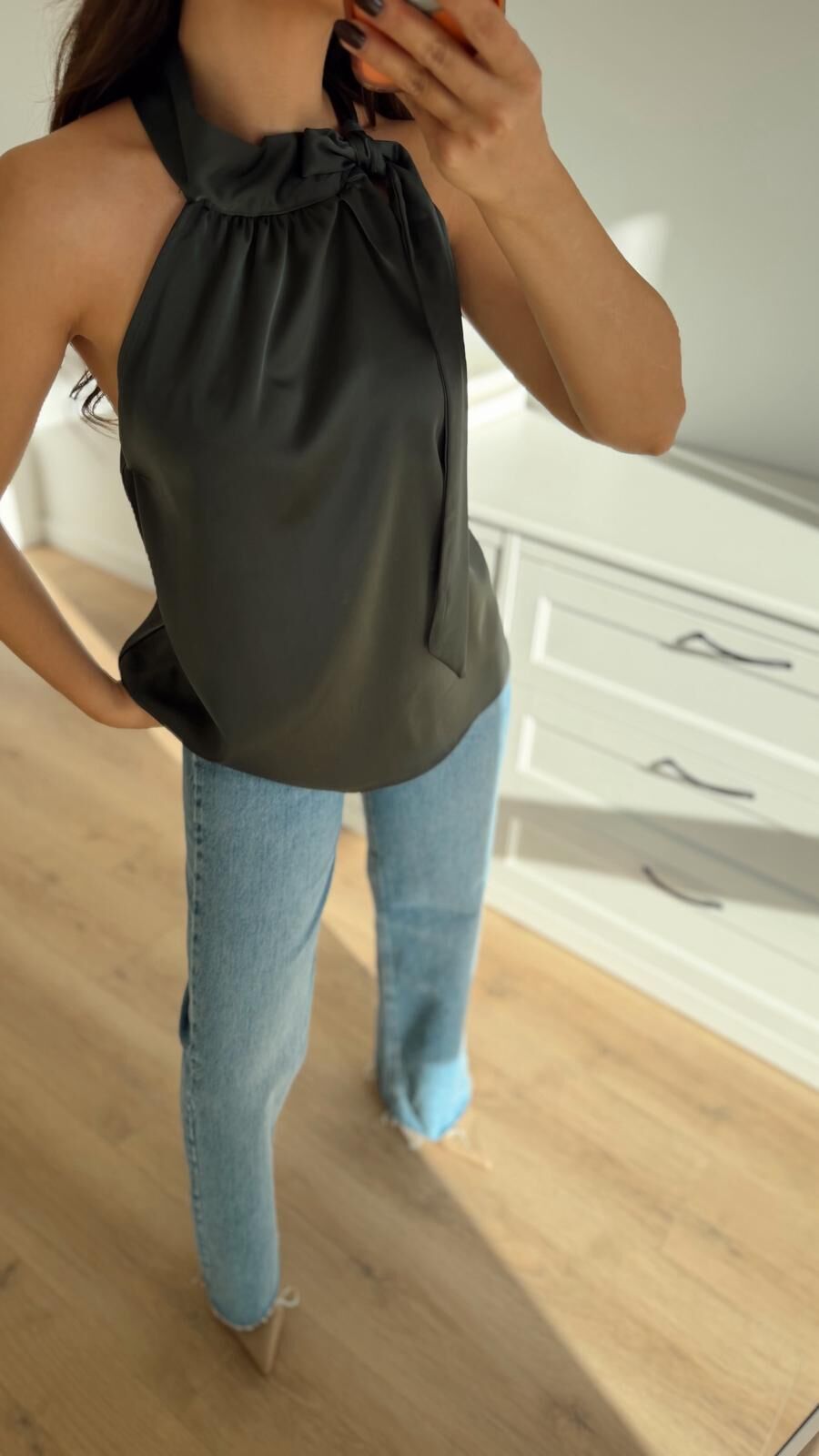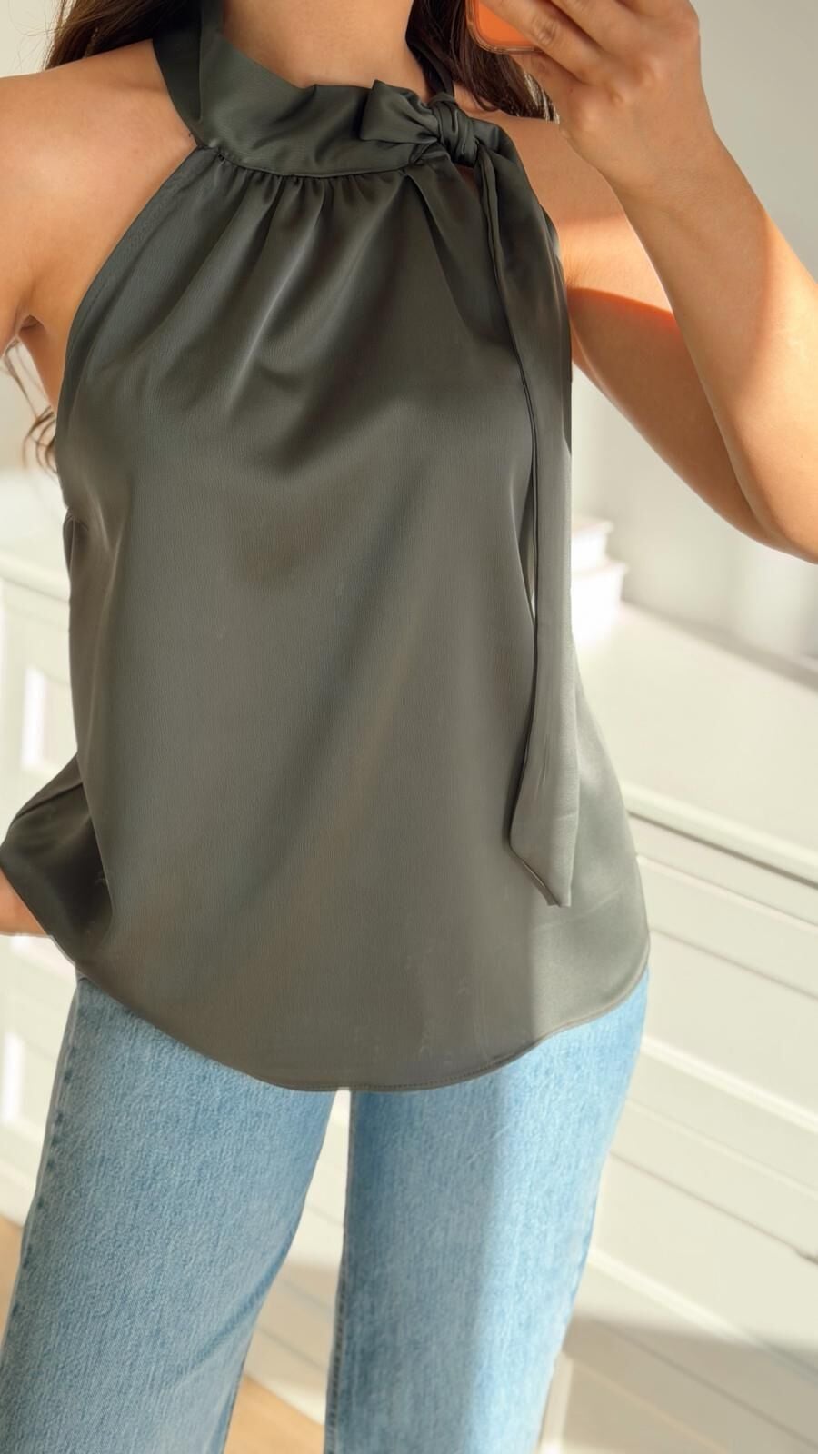 Boyundan Bağlı Yeşil Bluz