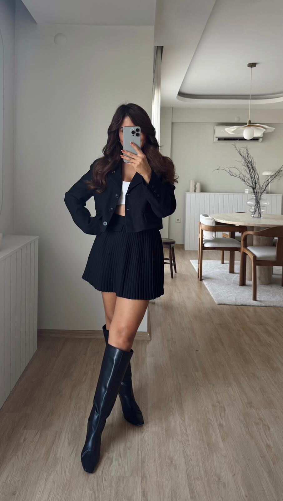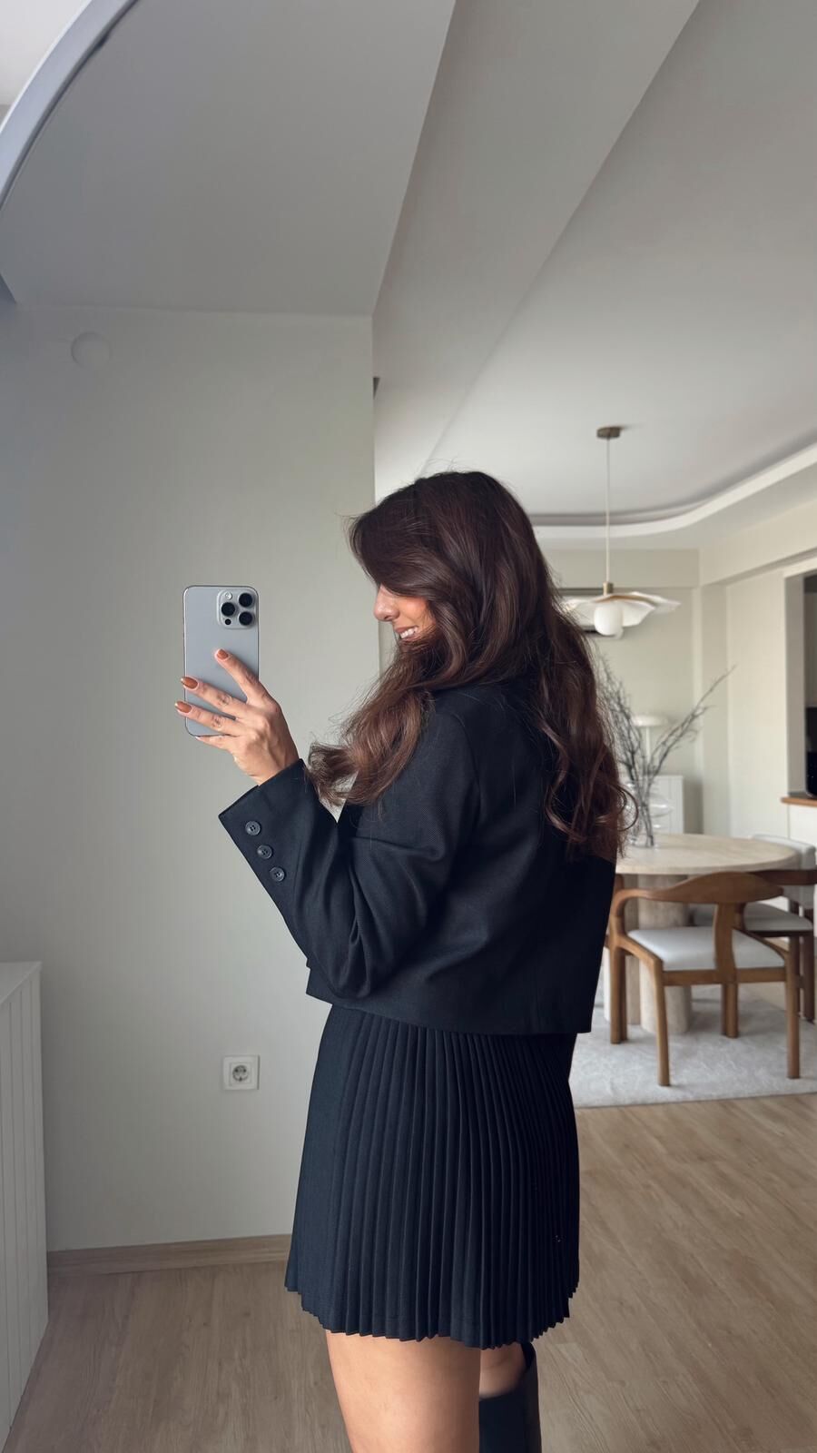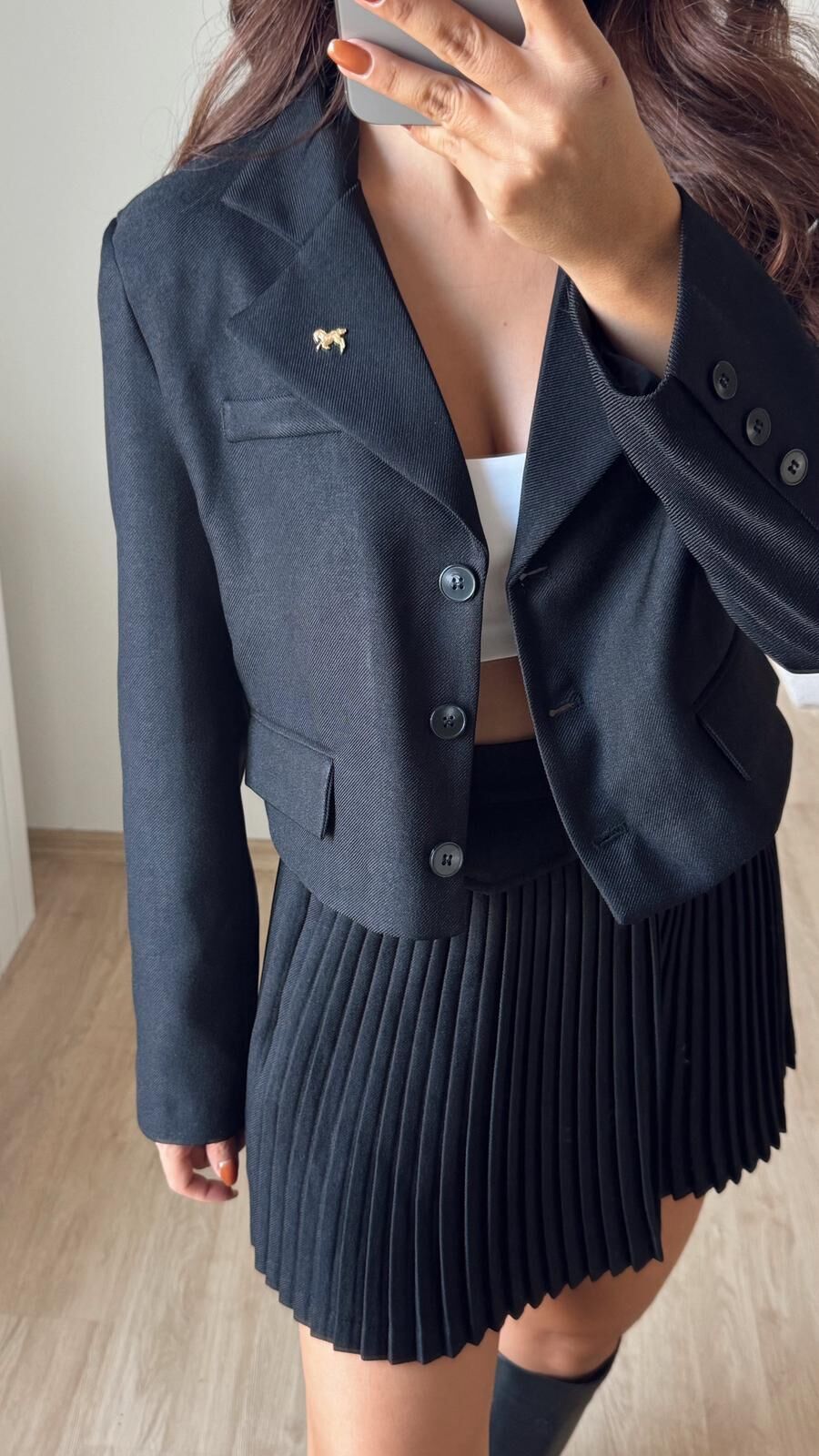 Broşlu Crop Siyah Blazer