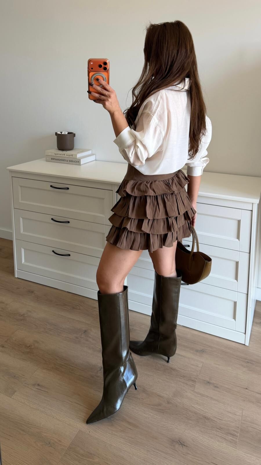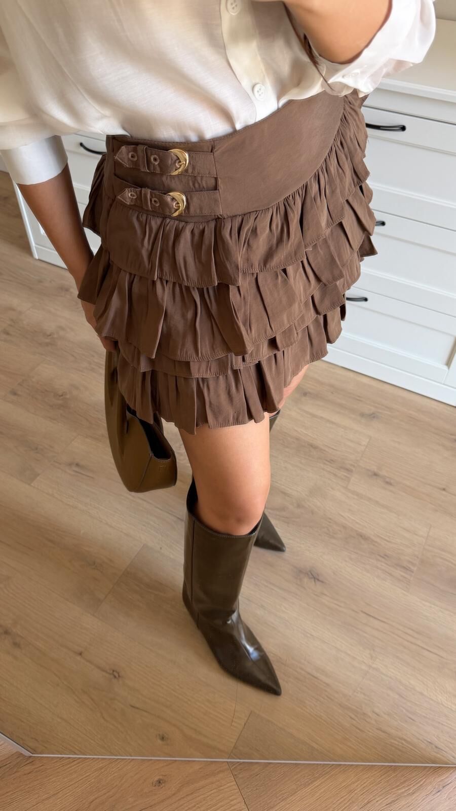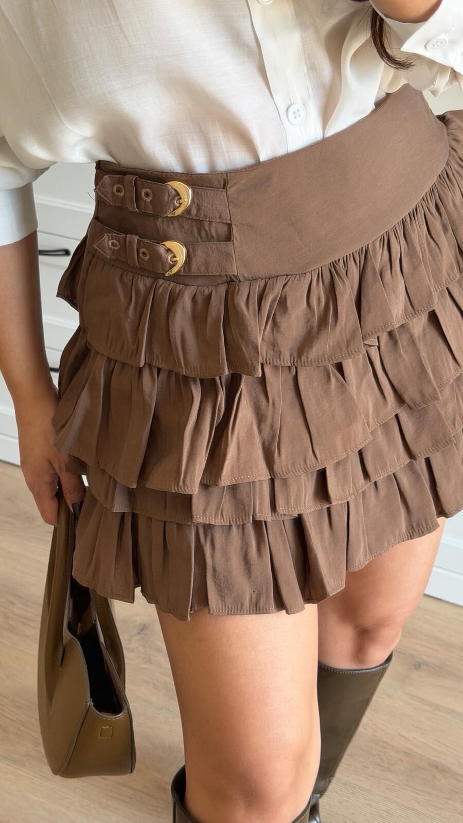 Çift Kemer Katlı Kahve Etek