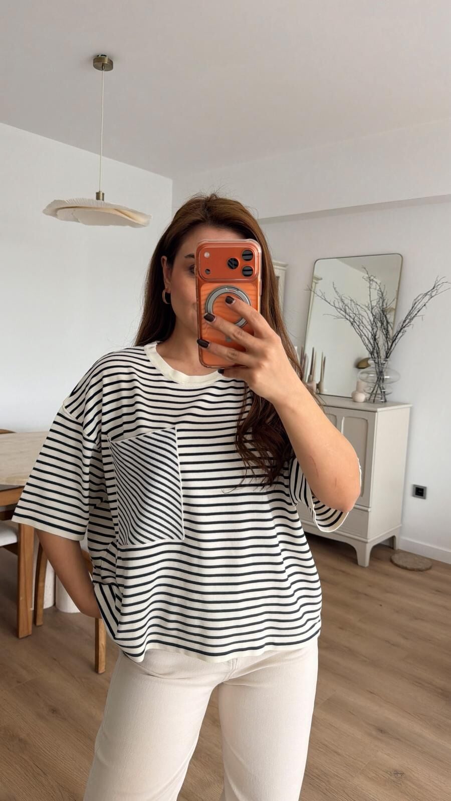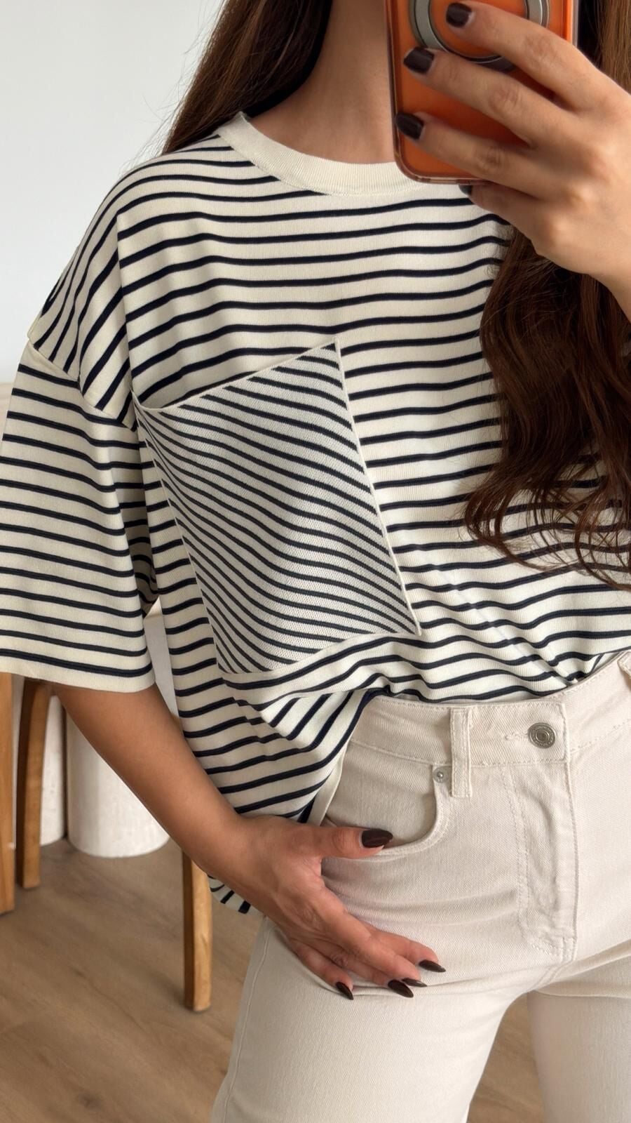 Çizgili Kısa Kol Triko Laci