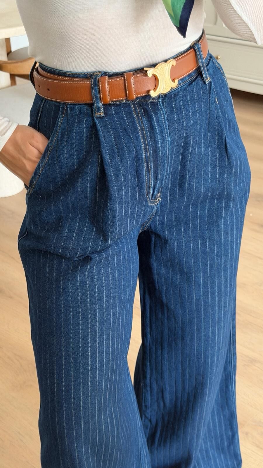 Çizgili Lacivert Jean