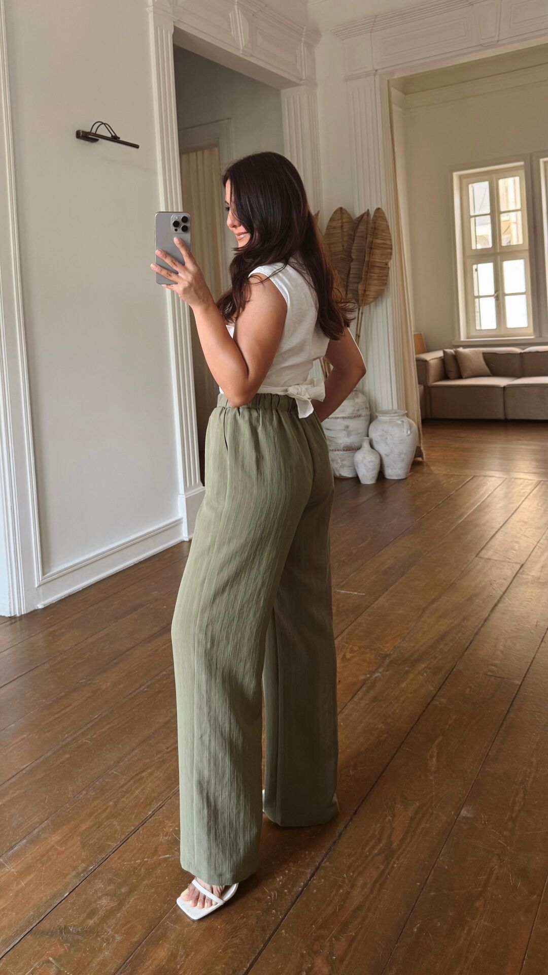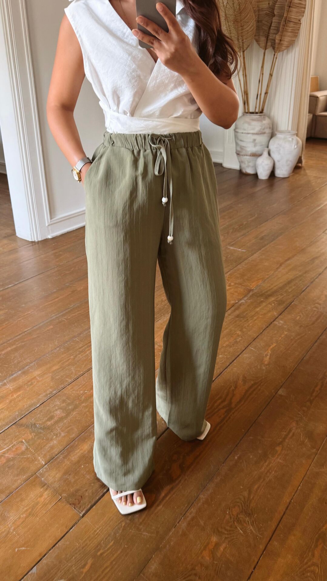 Çizgili Tencel Pantolon Haki
