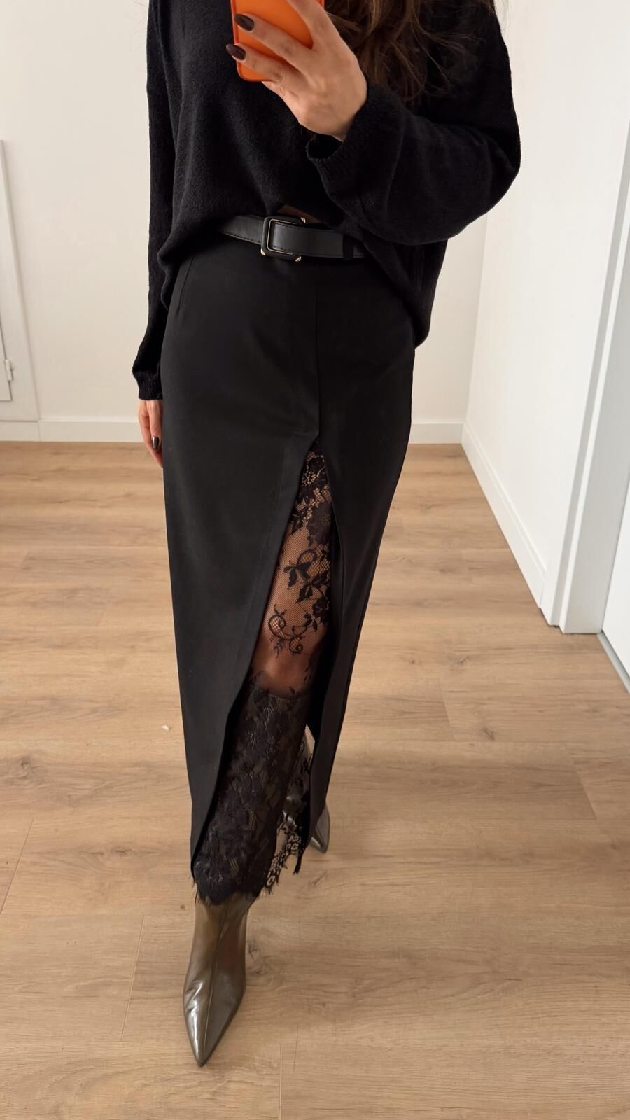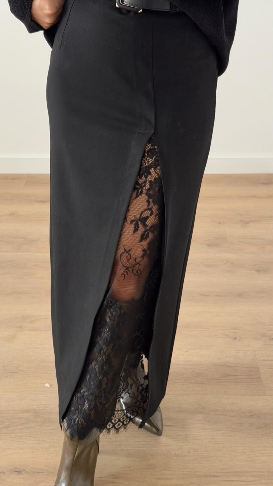 Dantel Yırtmaç Etek Siyah