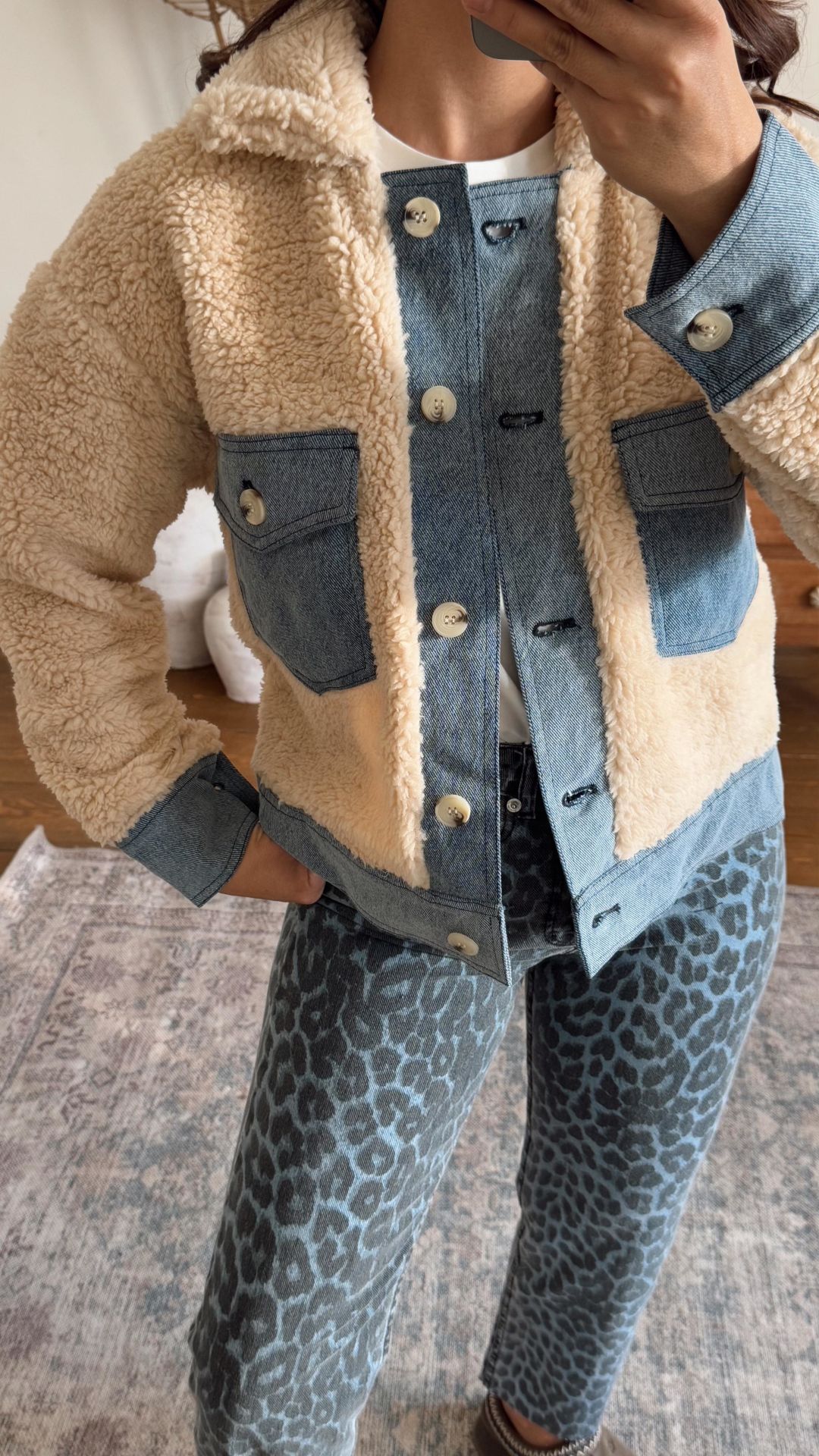Denim Garnili Peluş Ceket