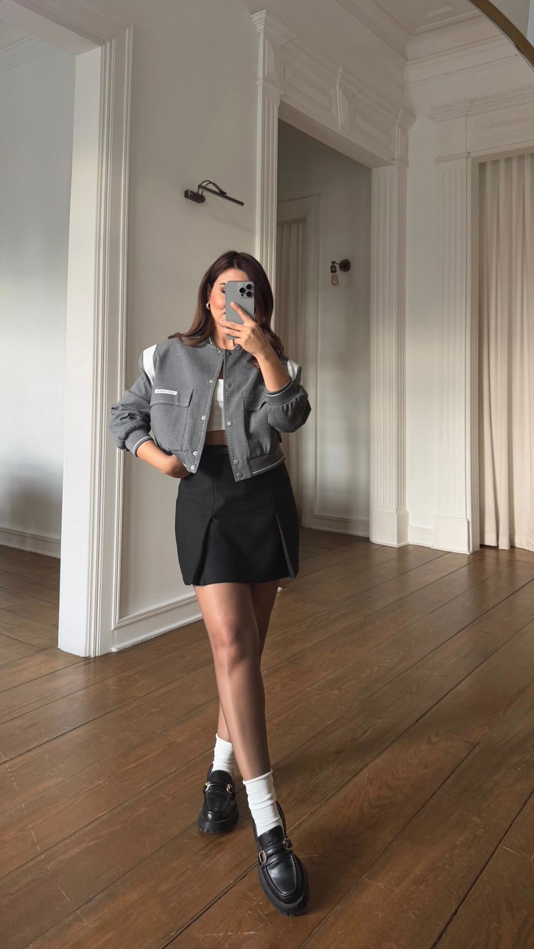 Dikişli Kumaş Bomber Gri