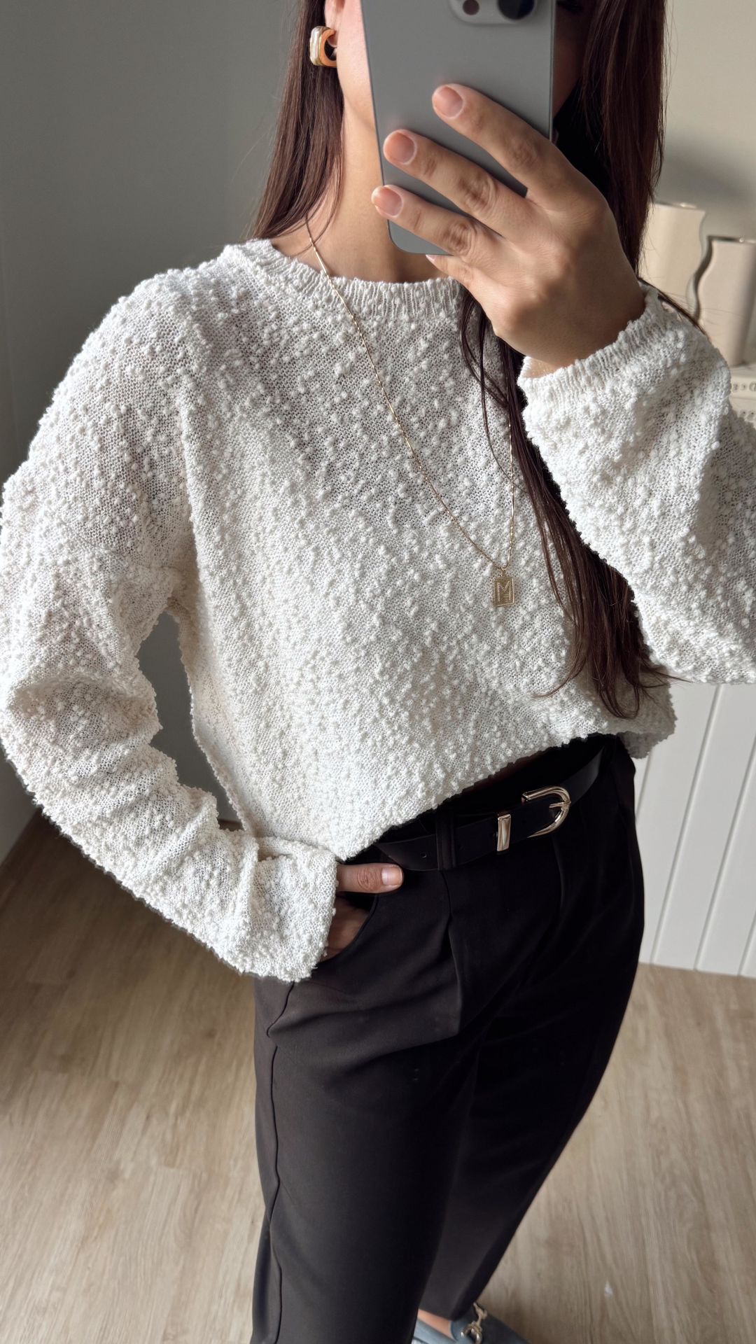 Dokulu Triko Ekru