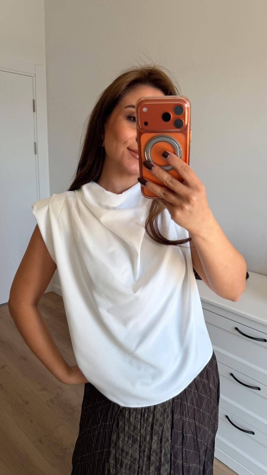 Dökümlü Kısa Kol Bluz Beyaz