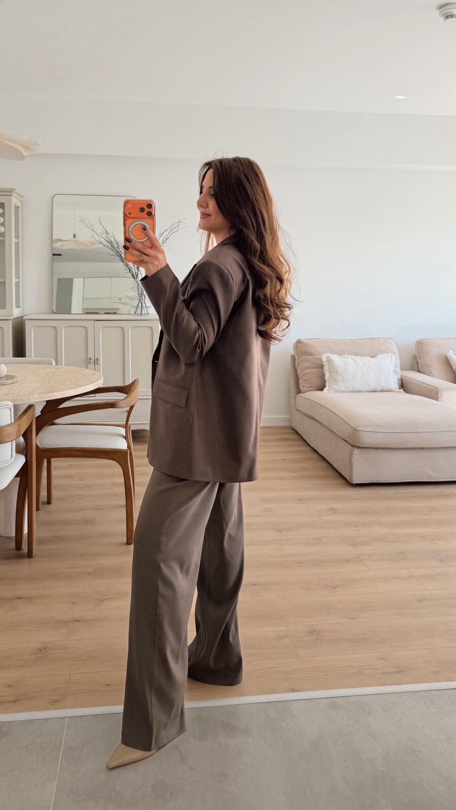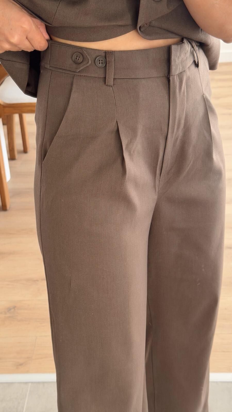Düğme Detay Kahve Palazzo