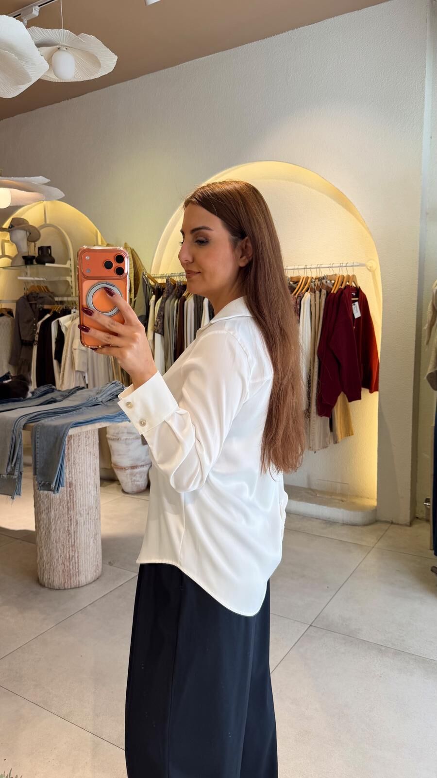 Ekru Saten Gömlek