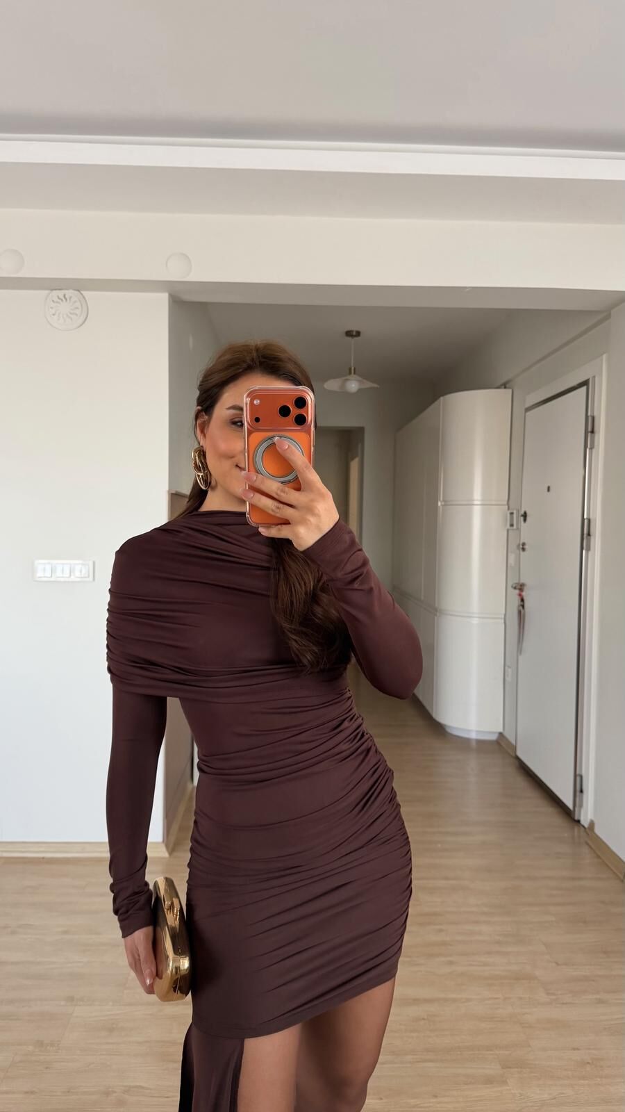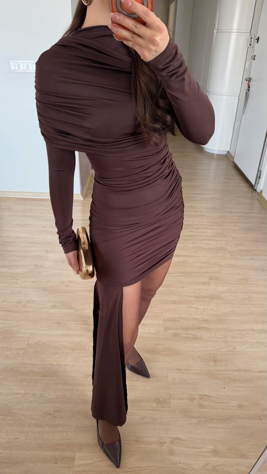 Elena Kahve Elbise