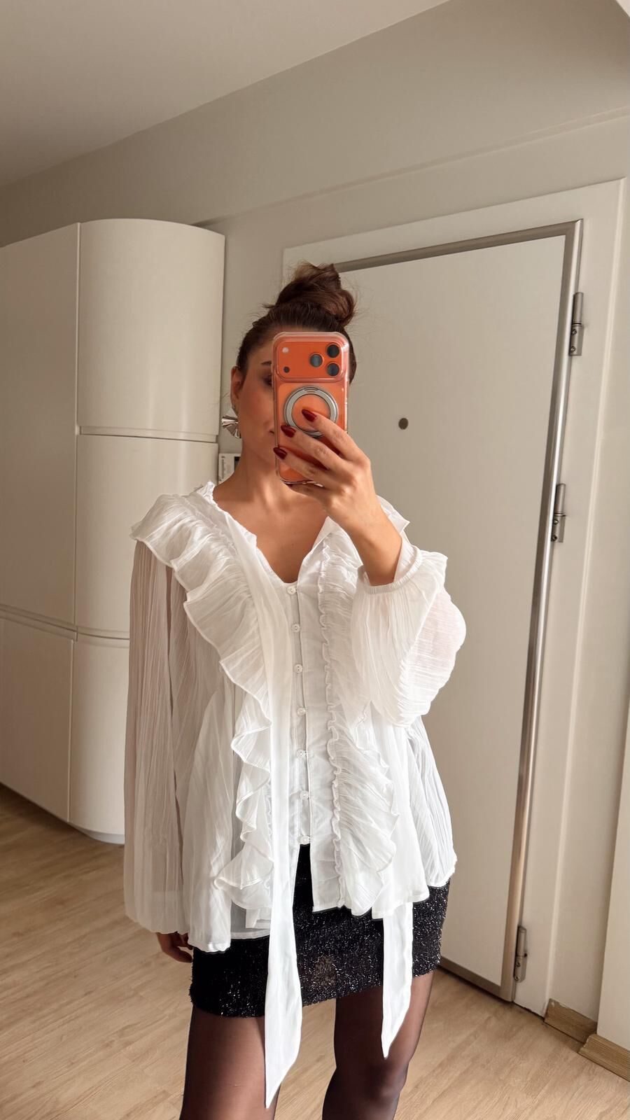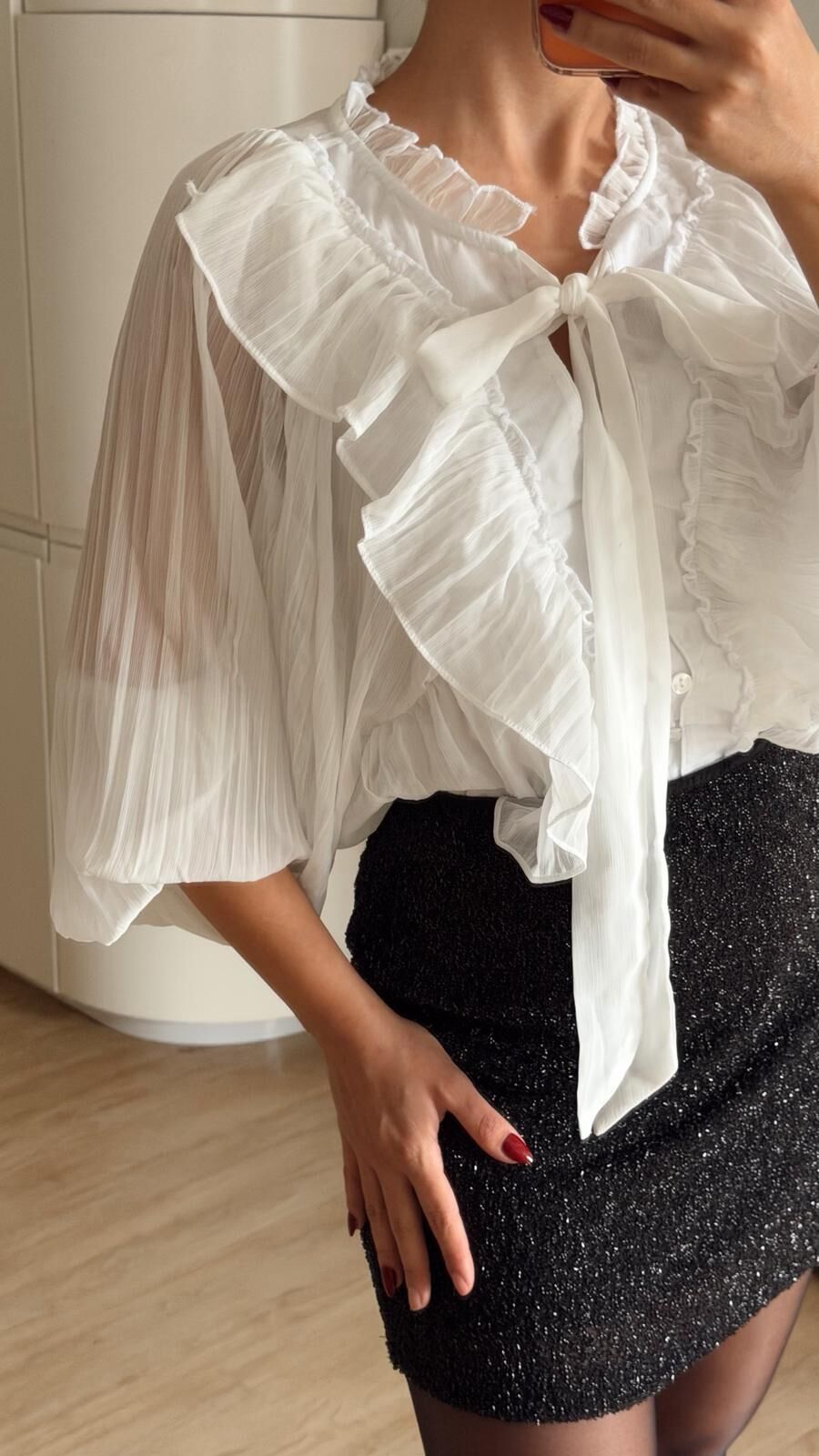 Fırfırlı Gömlek Bluz Takım Beyaz
