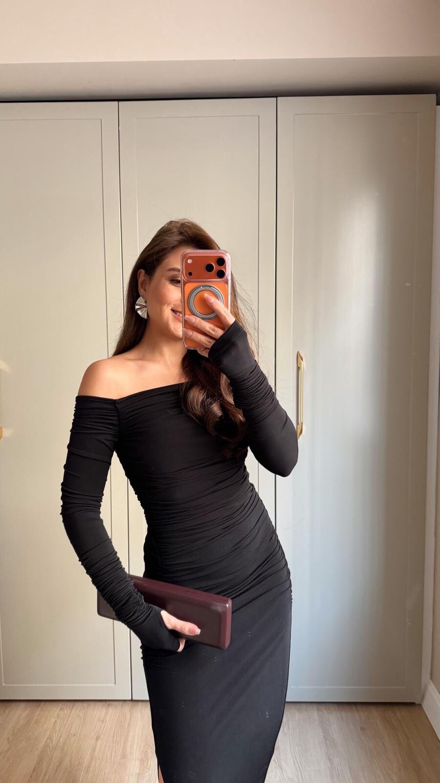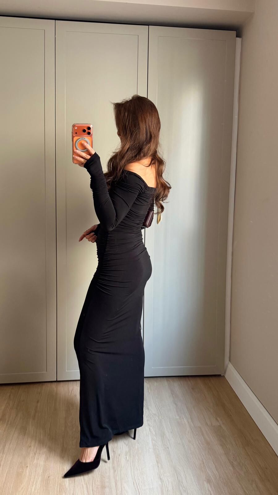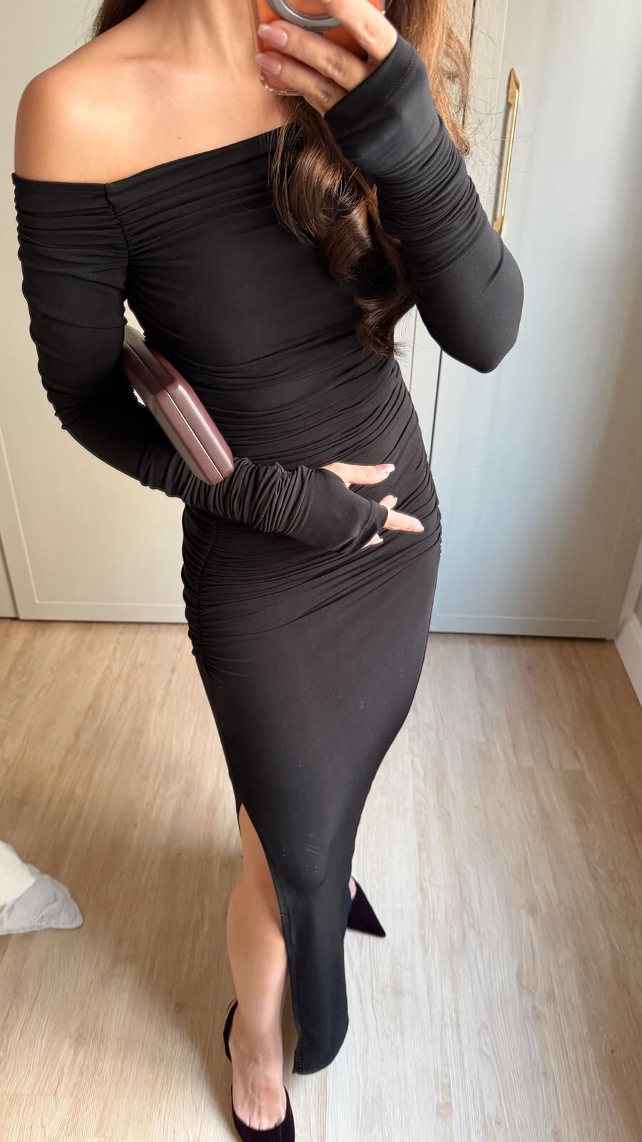 Full Drapeli Siyah Elbise
