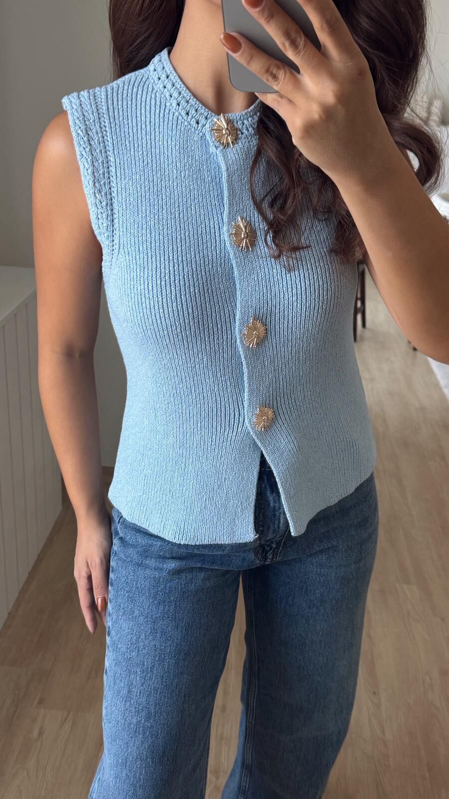 Gold Detay Yelek Mavi