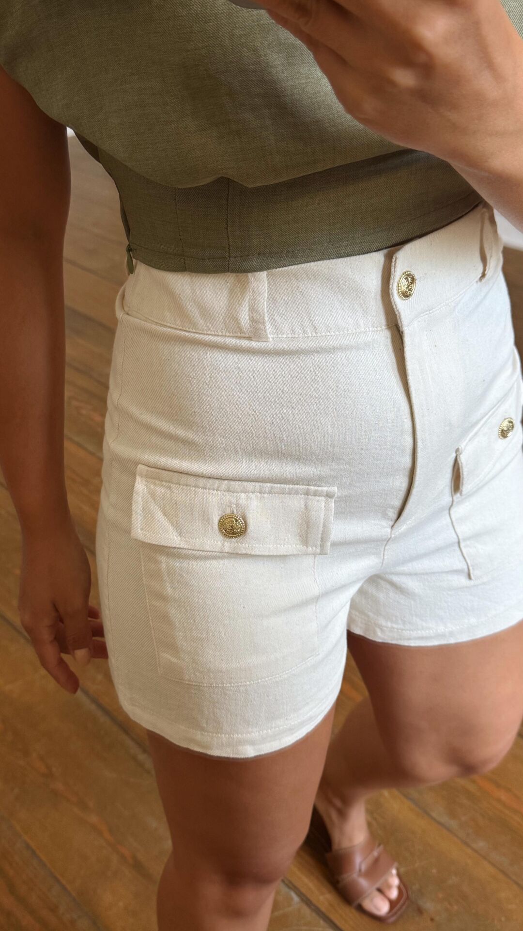 Gold Düğme Cepli Şort