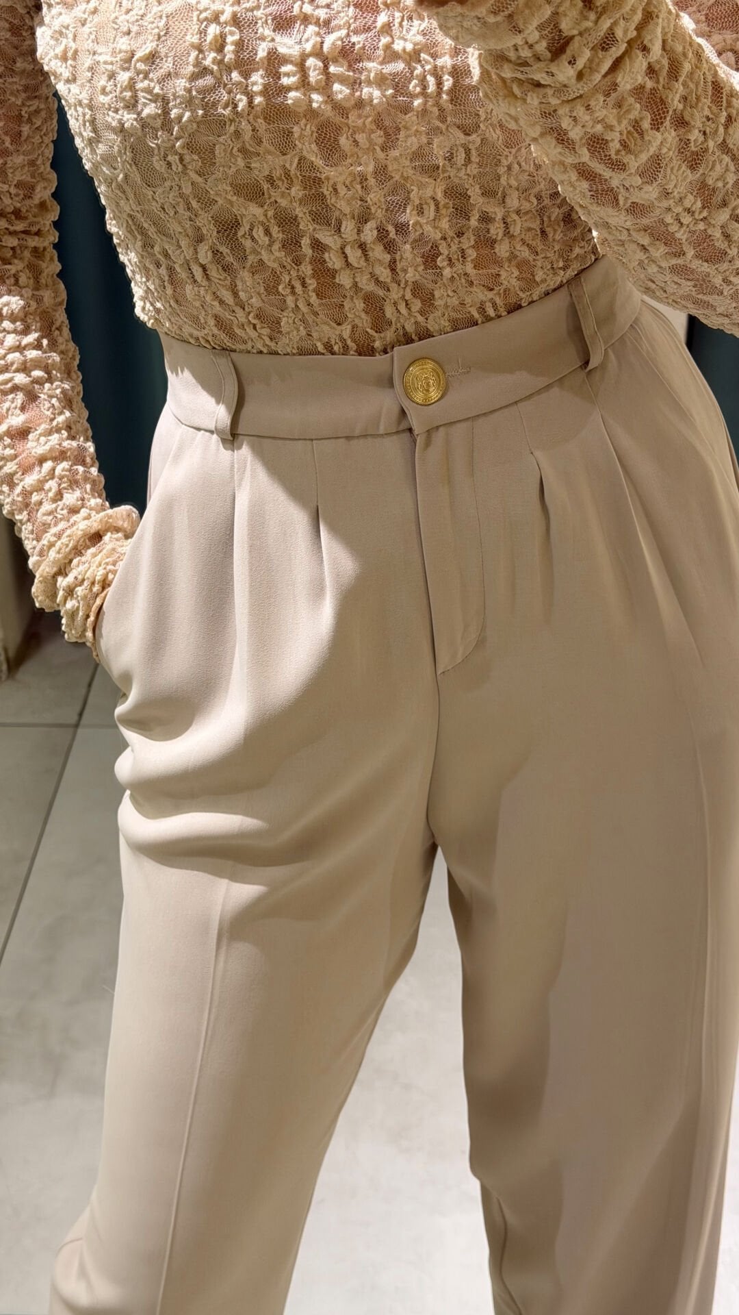 Gold Düğme Pileli Palazzo Taş