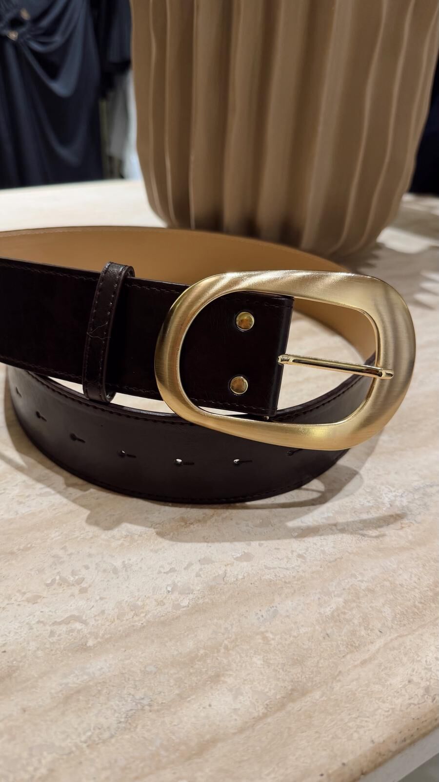 Gold Toka Kalın Kemer Kahve