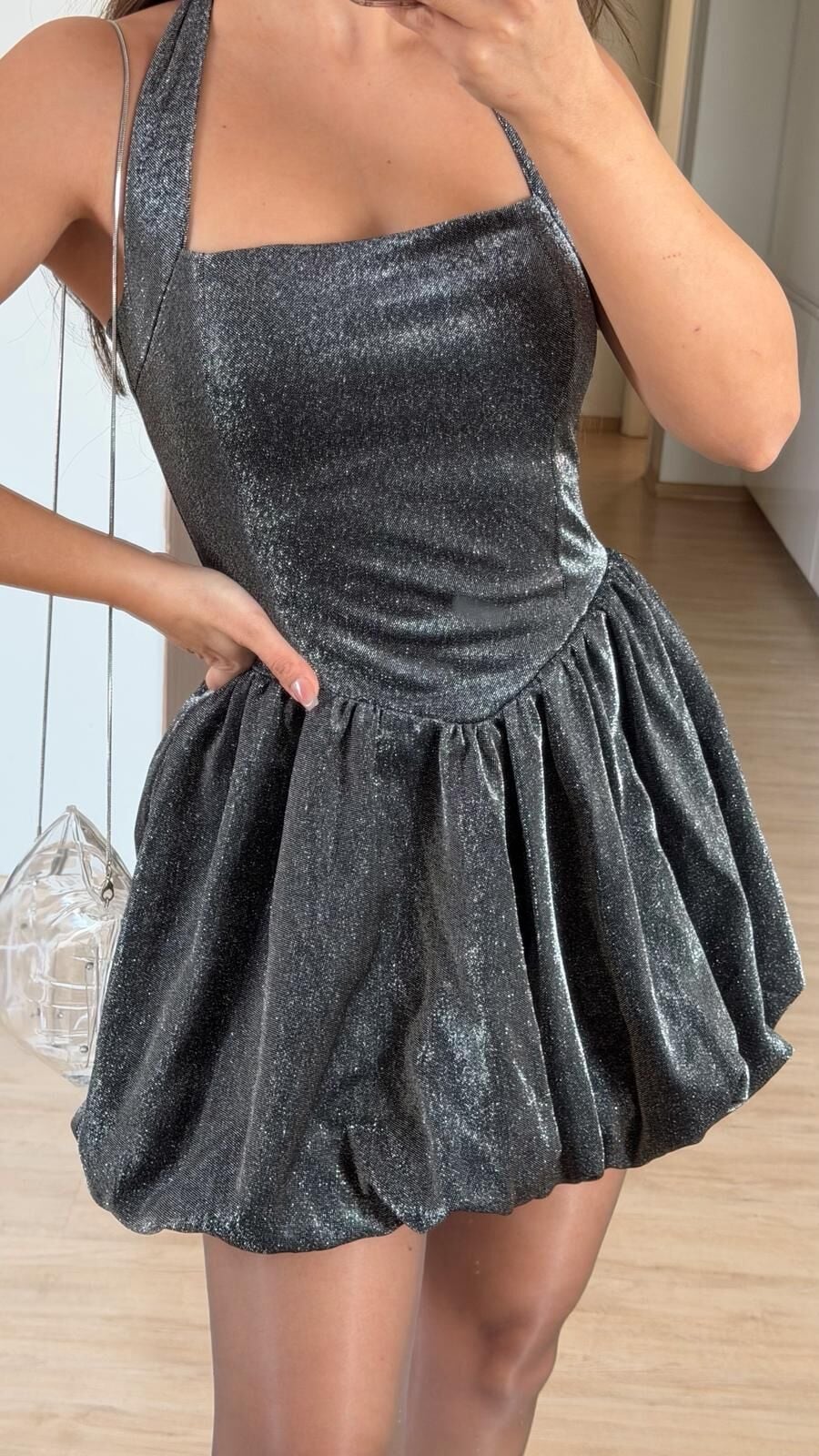 Gri Simli Balon Elbise