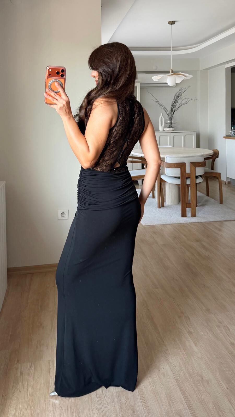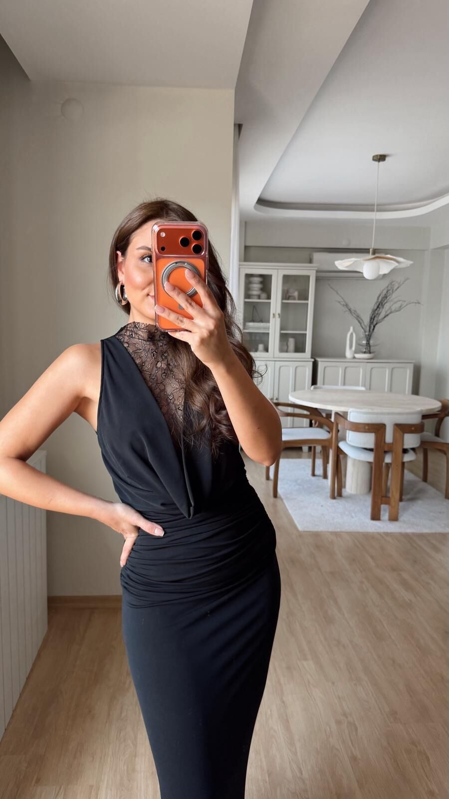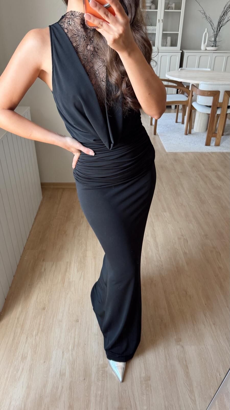 Güpür Dekolte Siyah Elbise