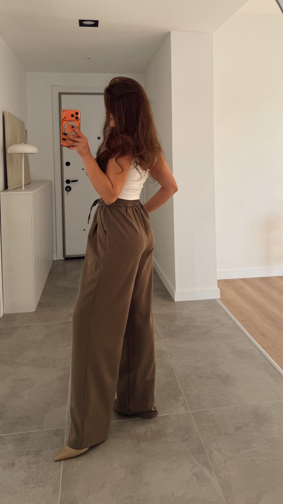İpli Kahve Bol Paça Pantolon