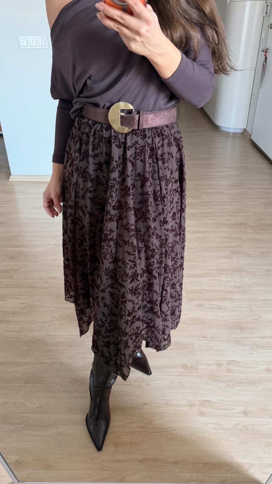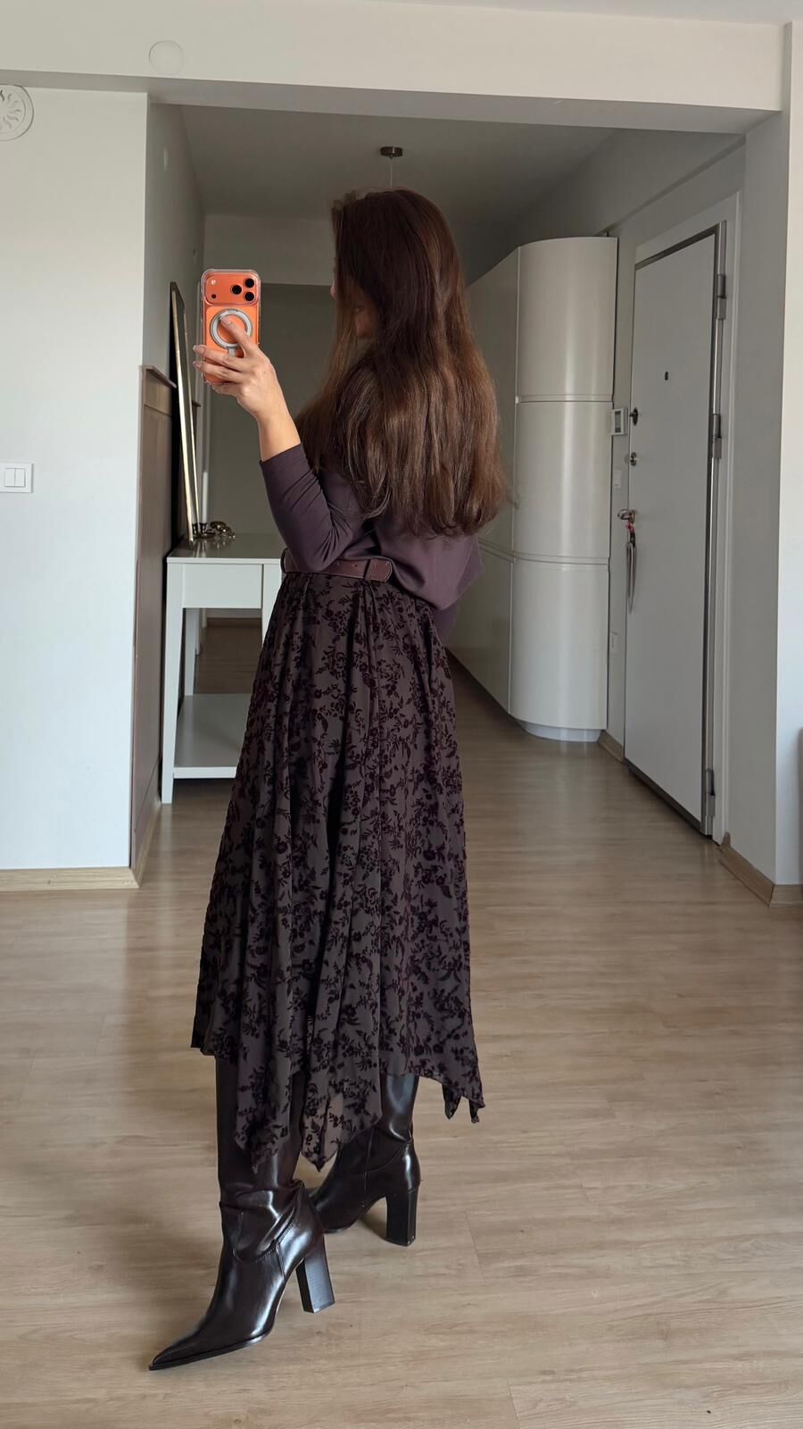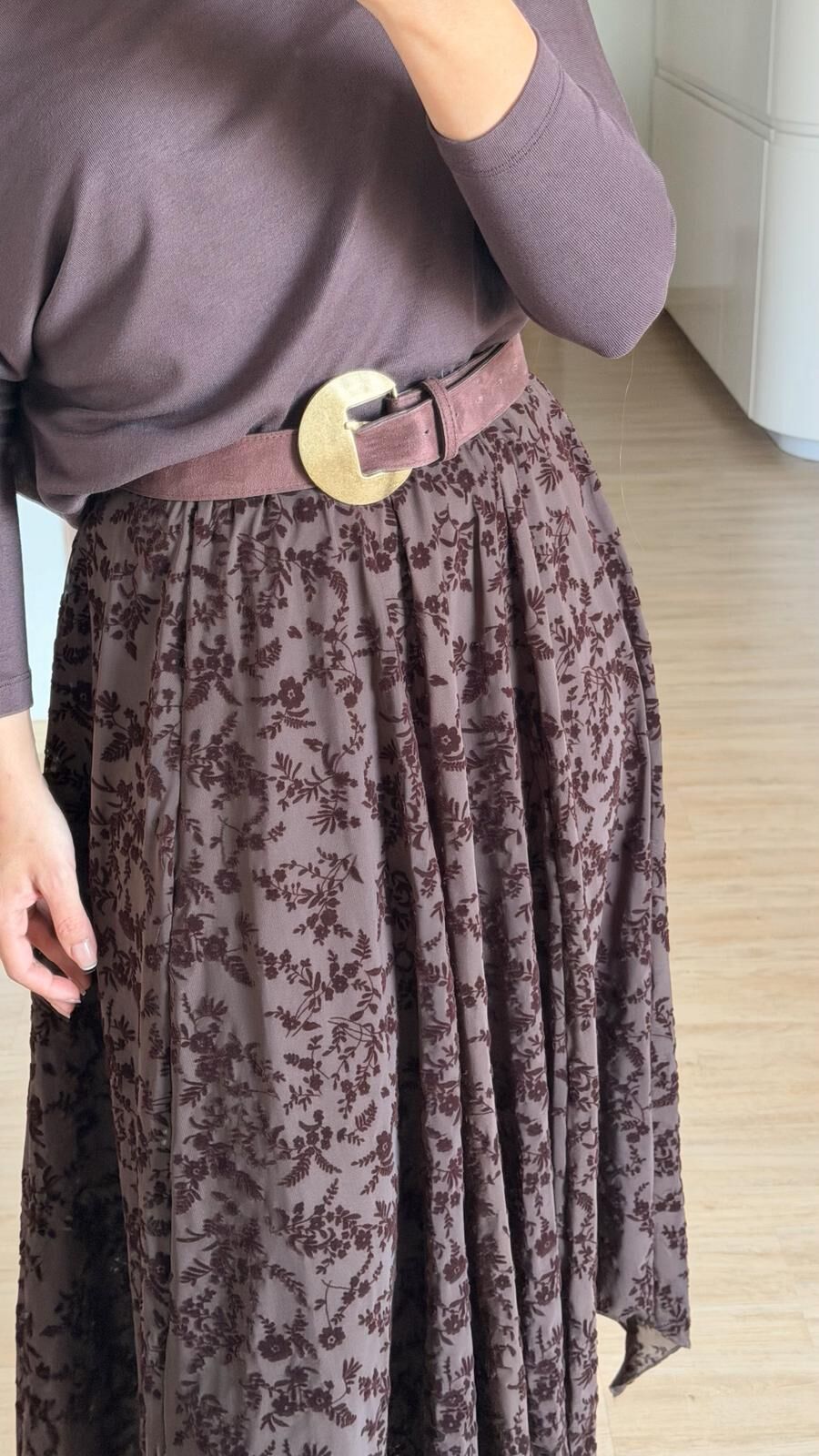 Kadife Çiçekli Mesh Etek