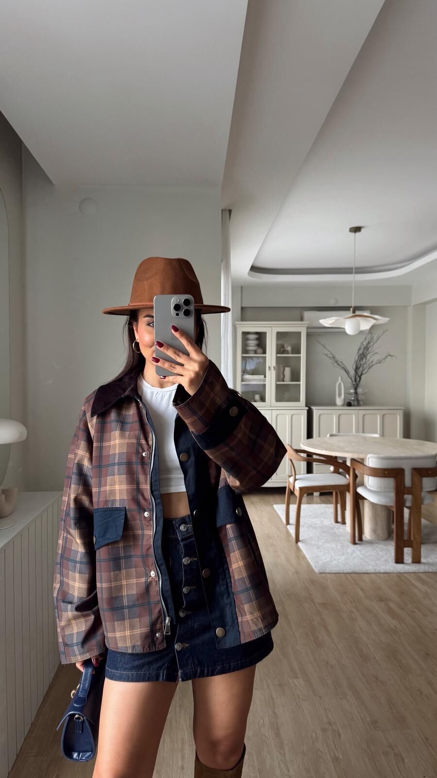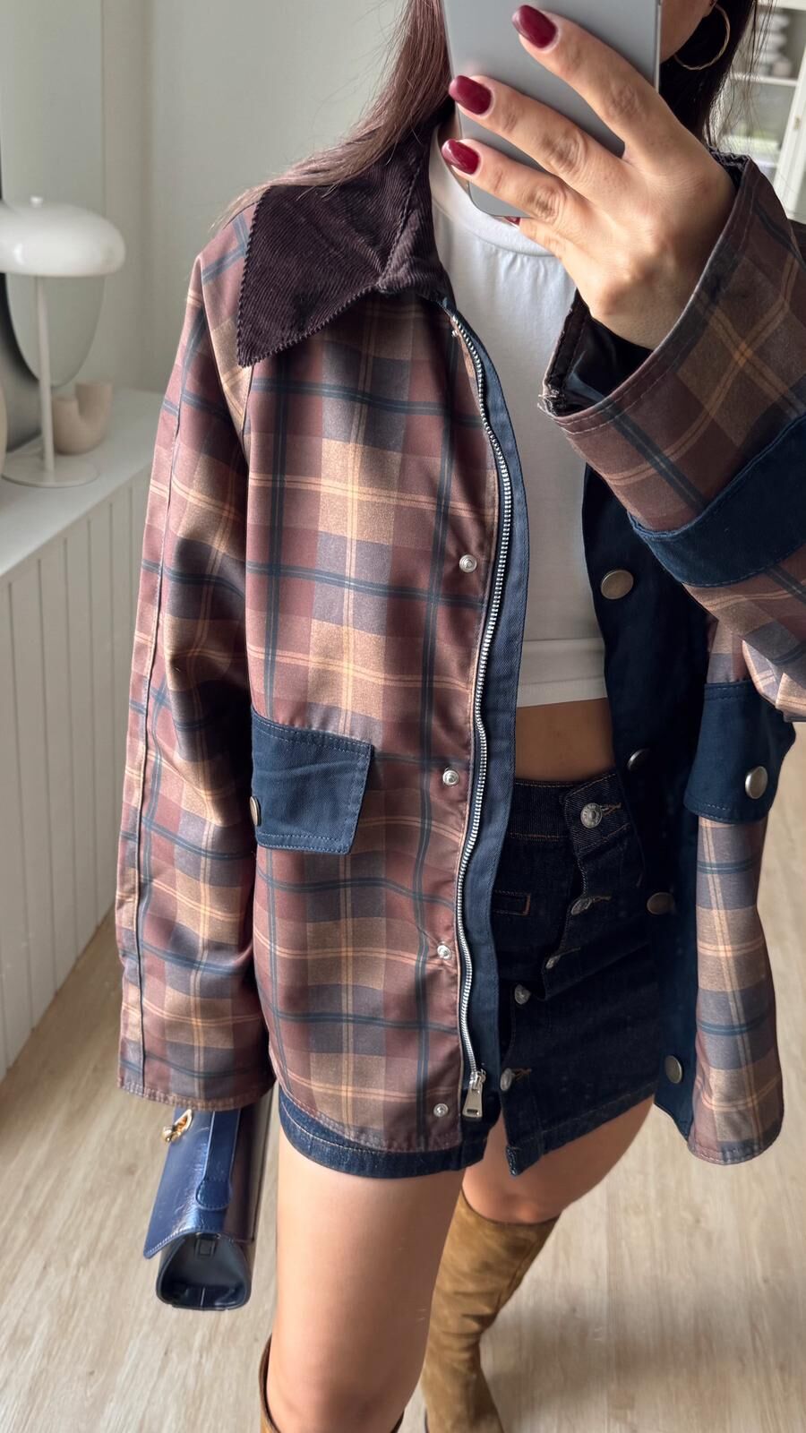 Kadife Yaka Ekose Ceket