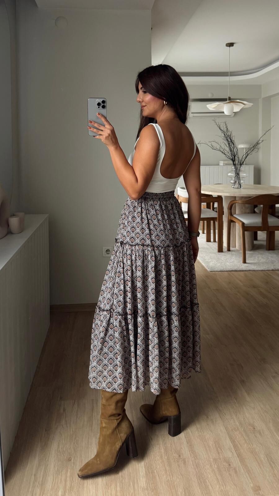 Kahve Desenli Etek