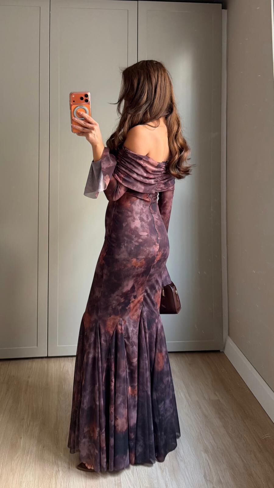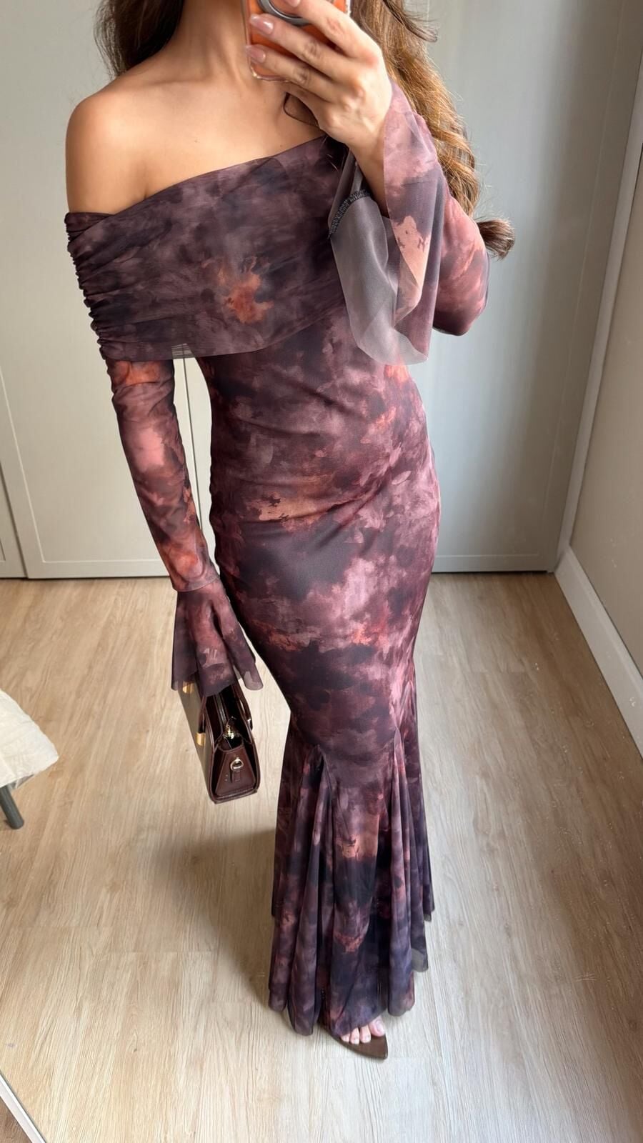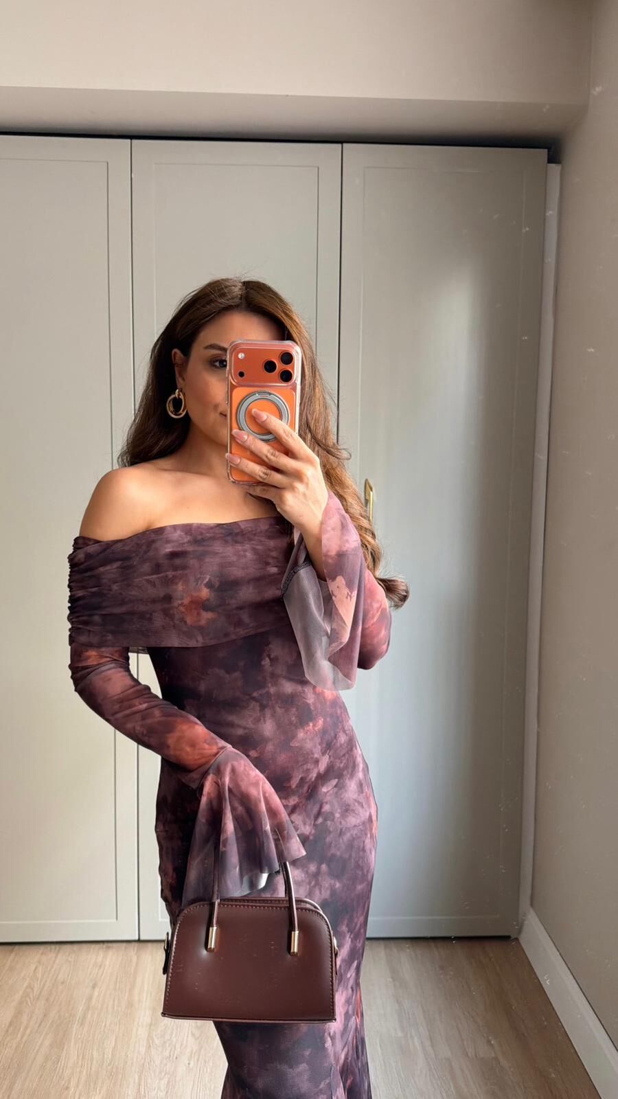 Kahve Desenli Madonna Mesh Elbise