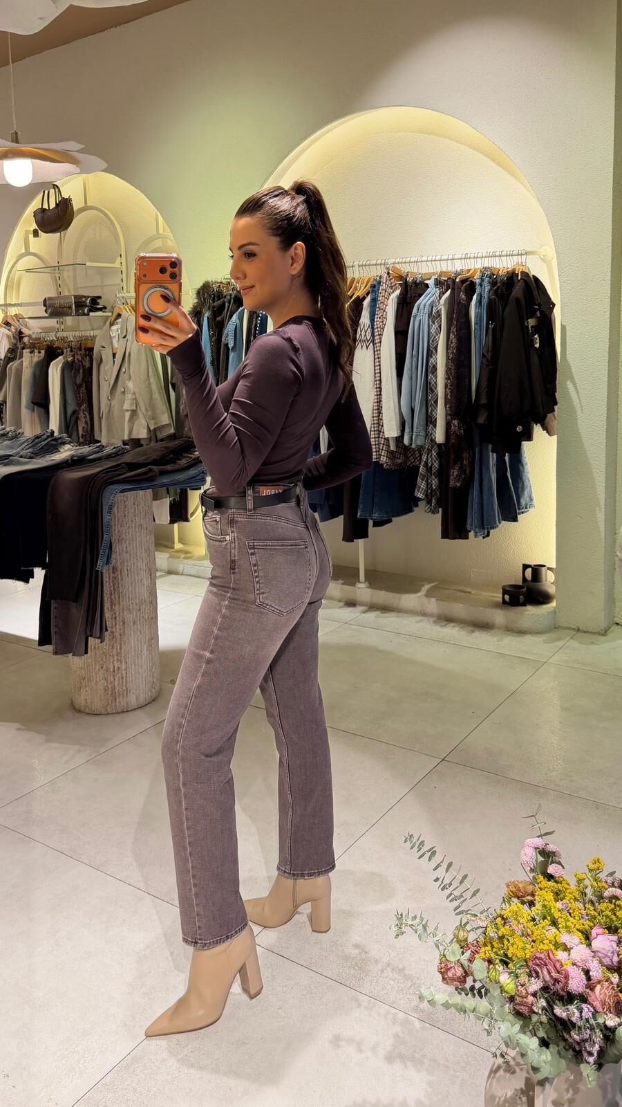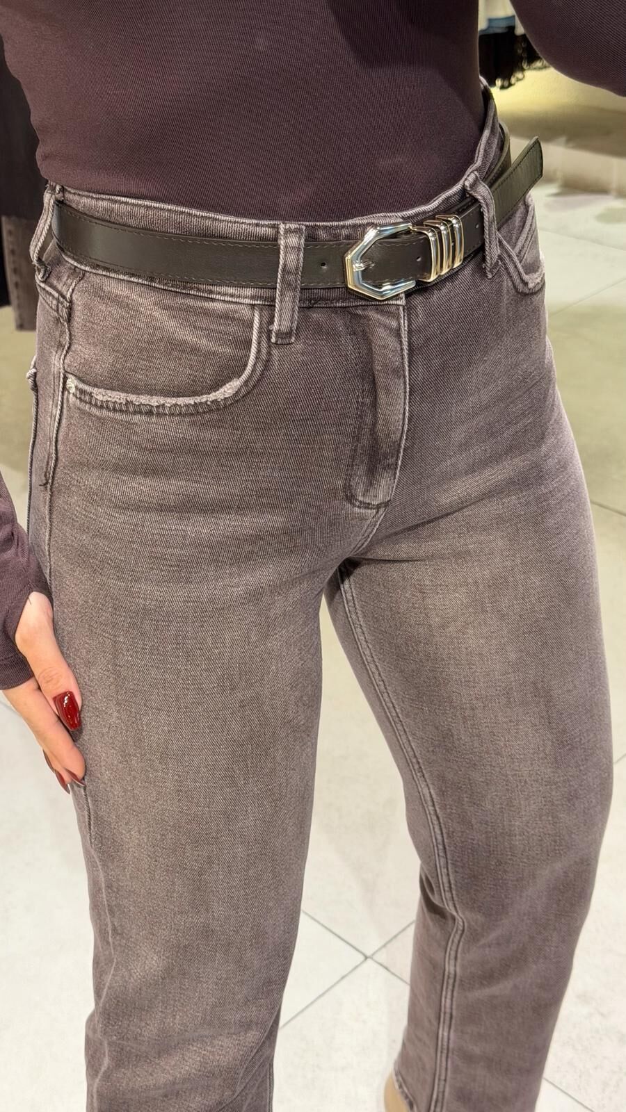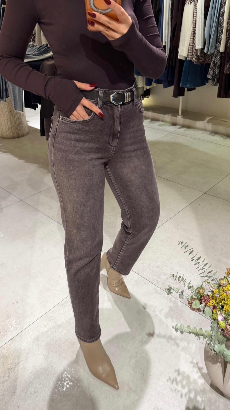 Kahve Kemerli Mom Jean
