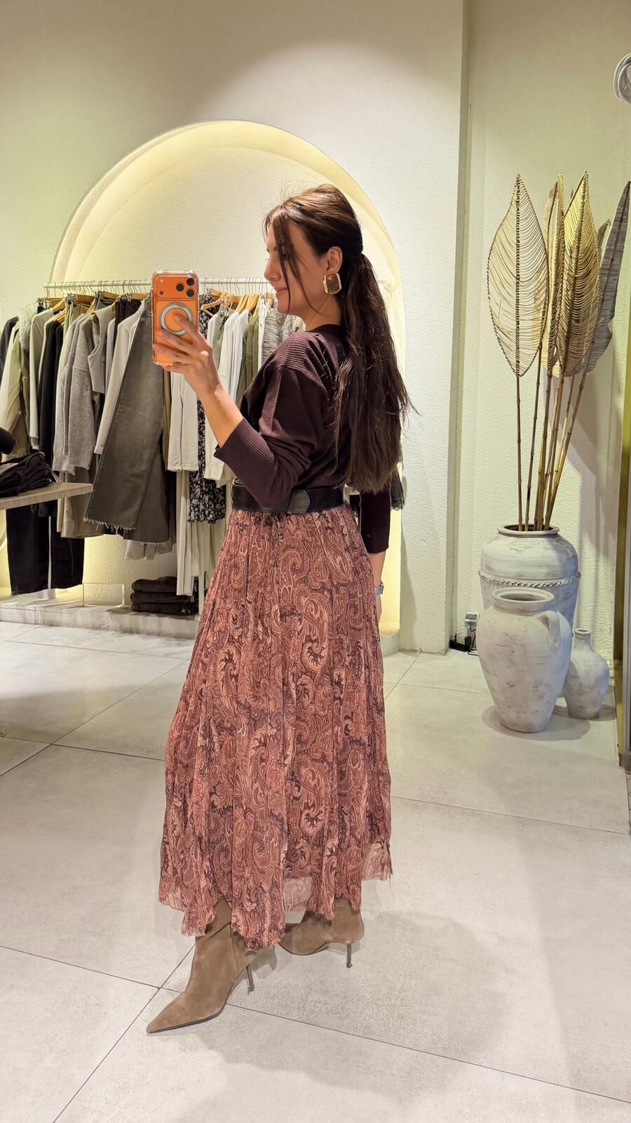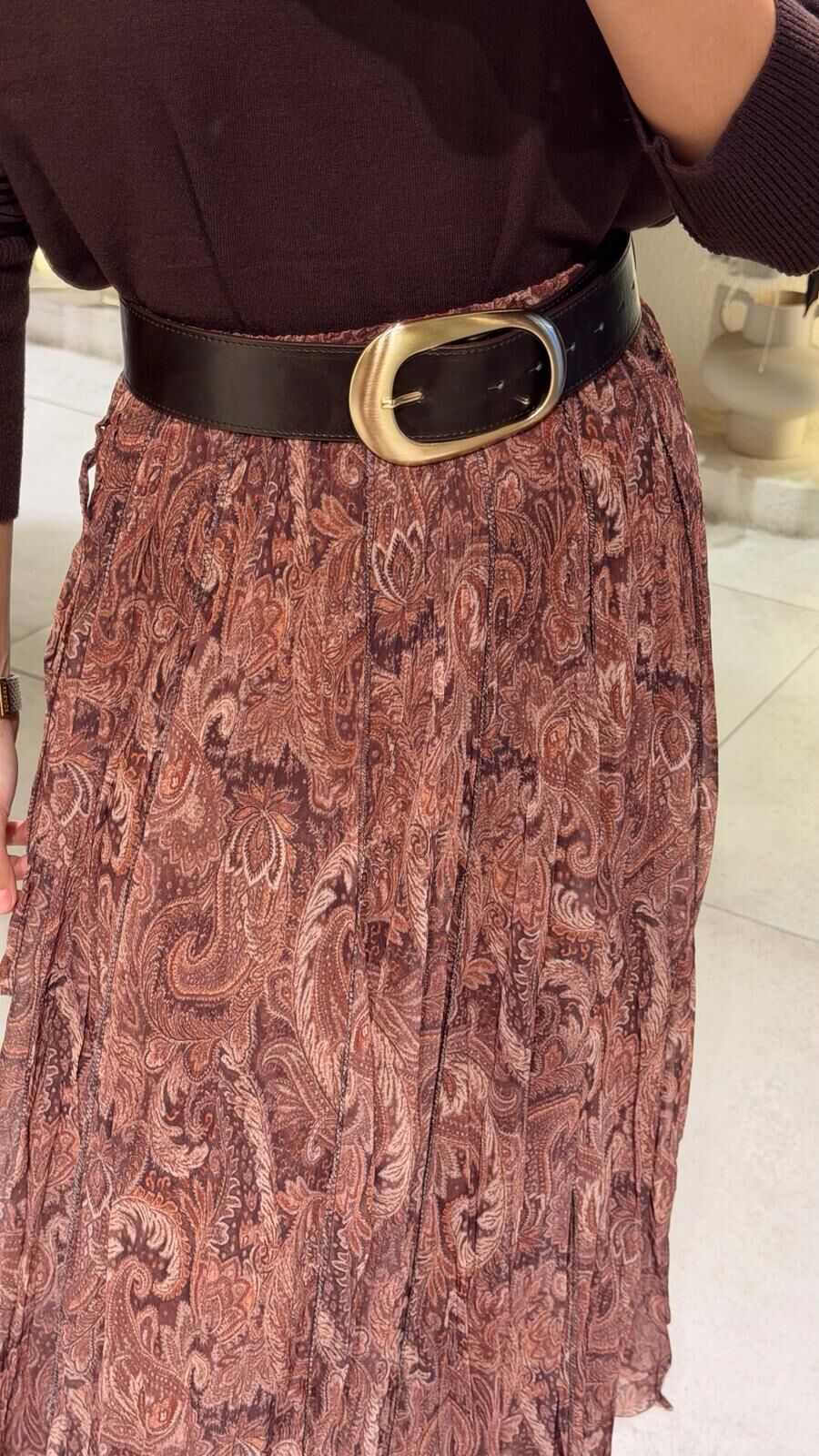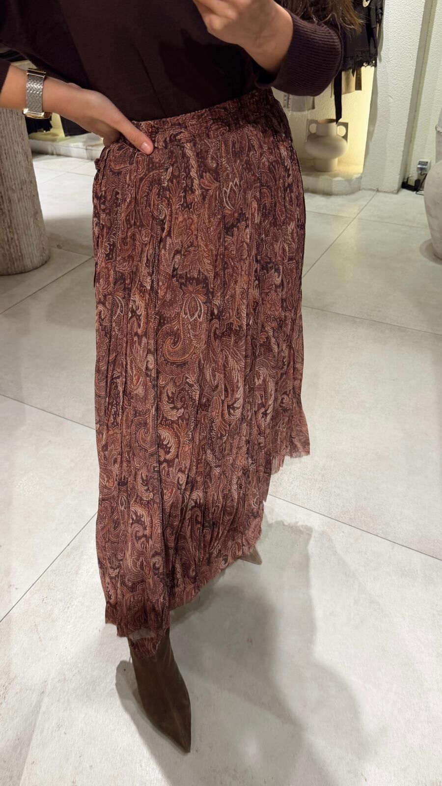 Kahve Şal Desen Şifon Etek