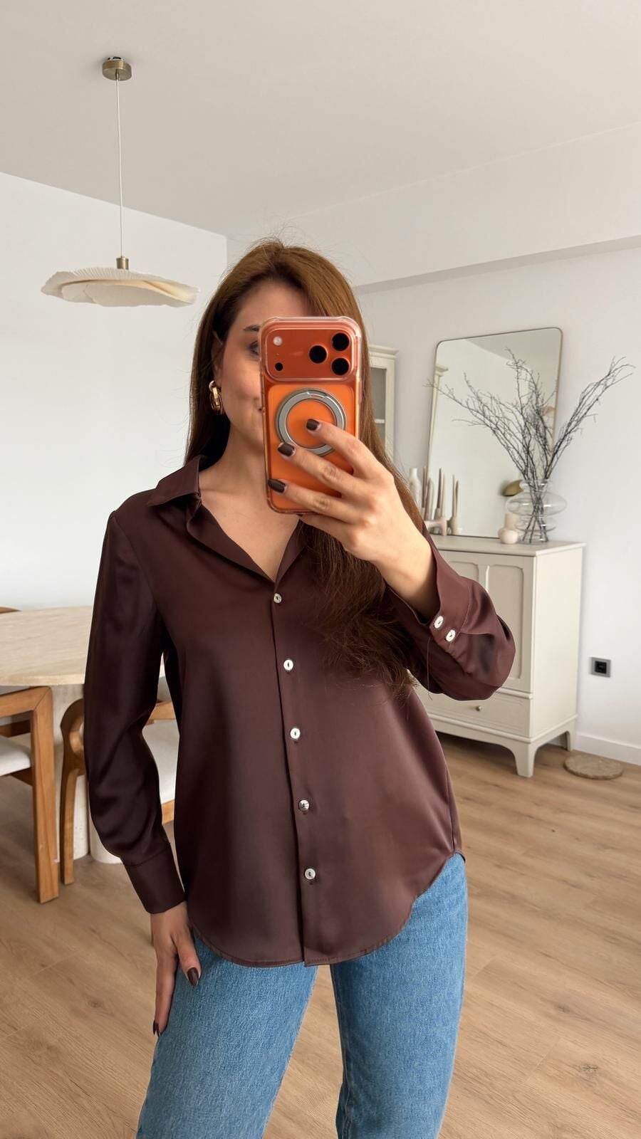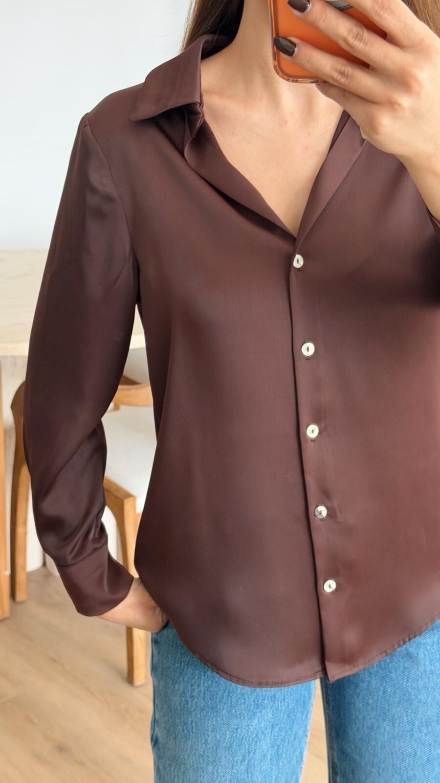 Kahve Saten Gömlek