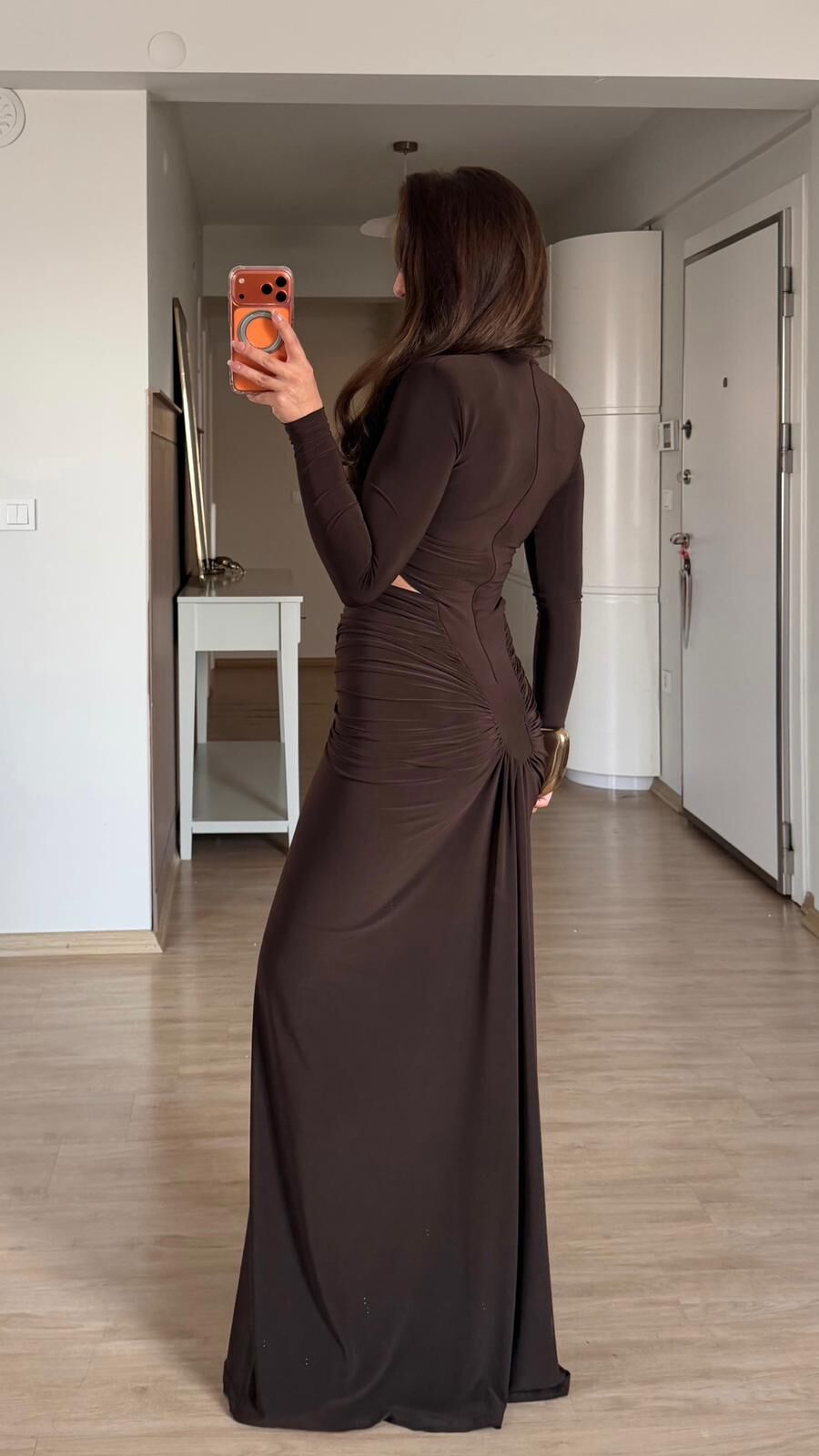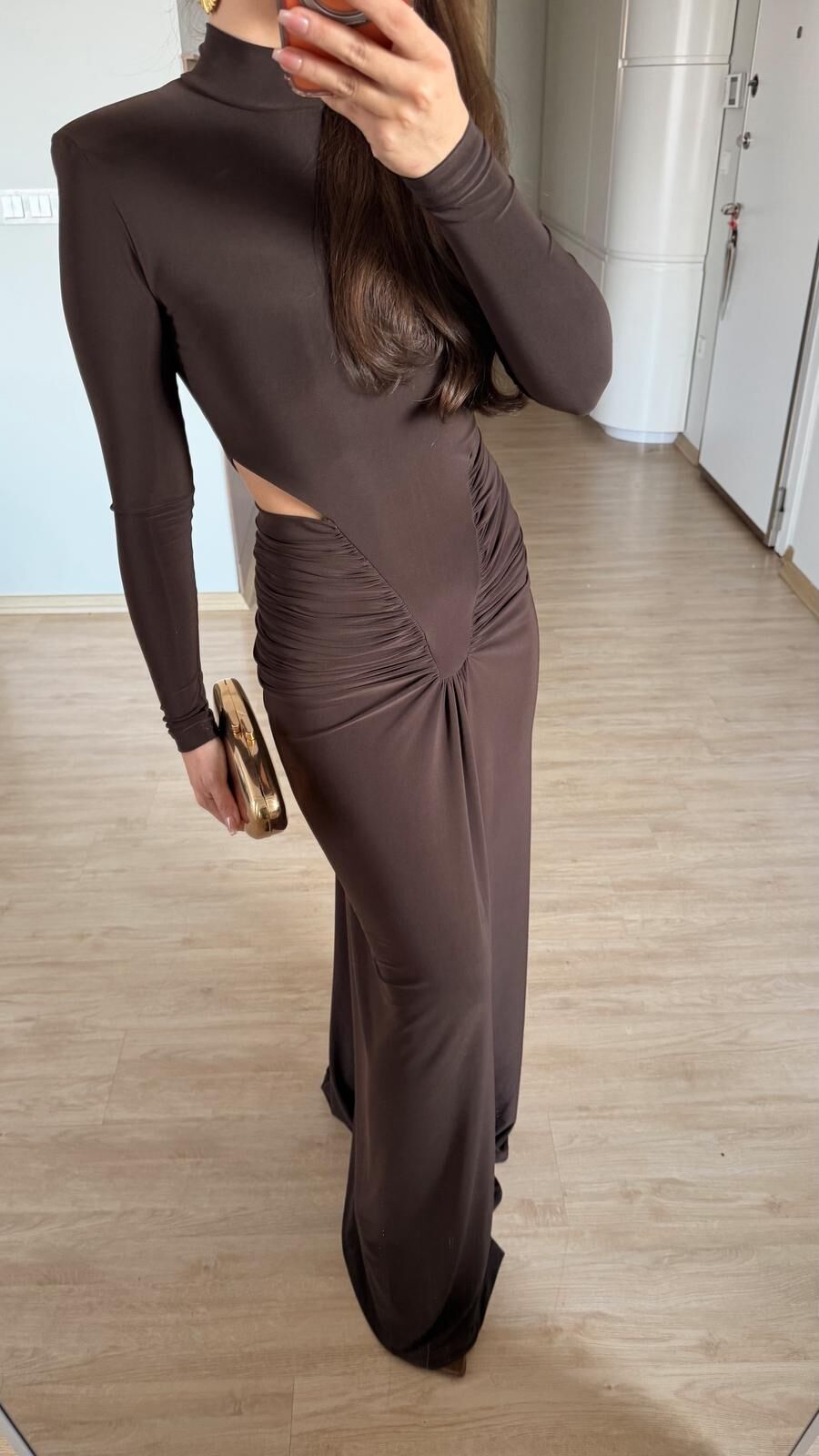 Kahve Vatkalı Drapeli Elbise