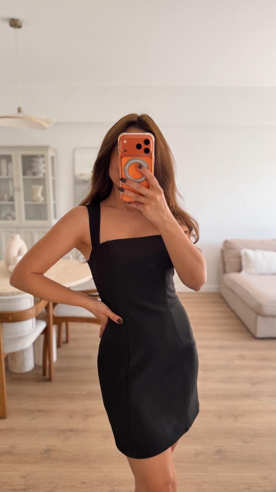 Kare Yaka Siyah Mini Elbise
