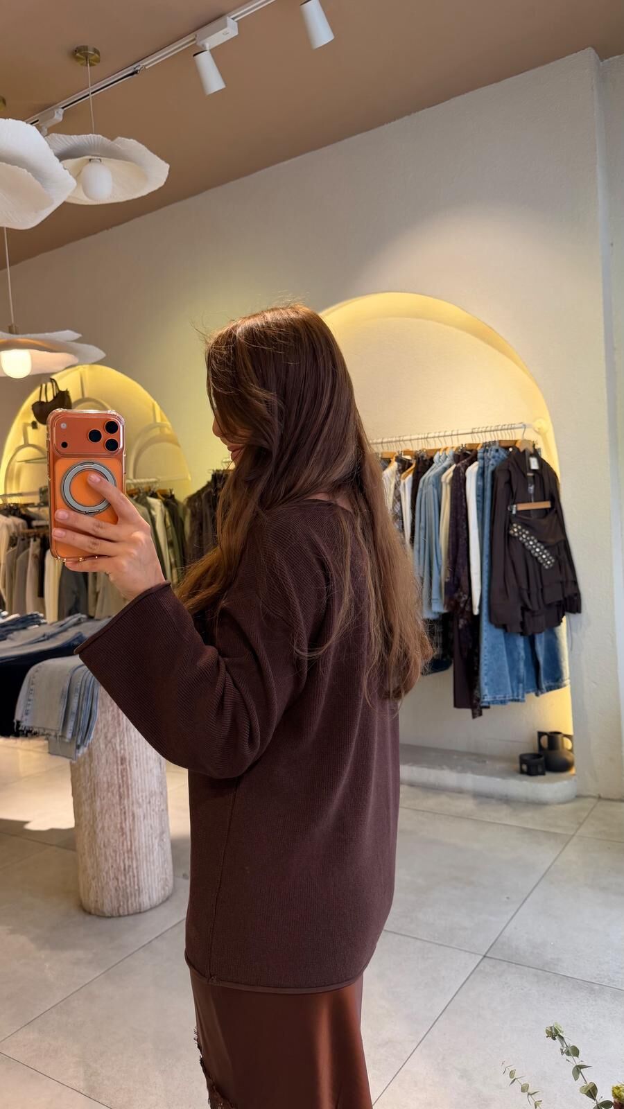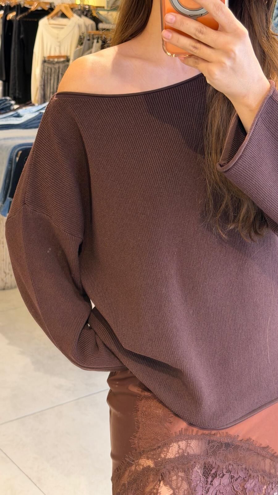 Kayık Yaka Fitilli Triko Kahve