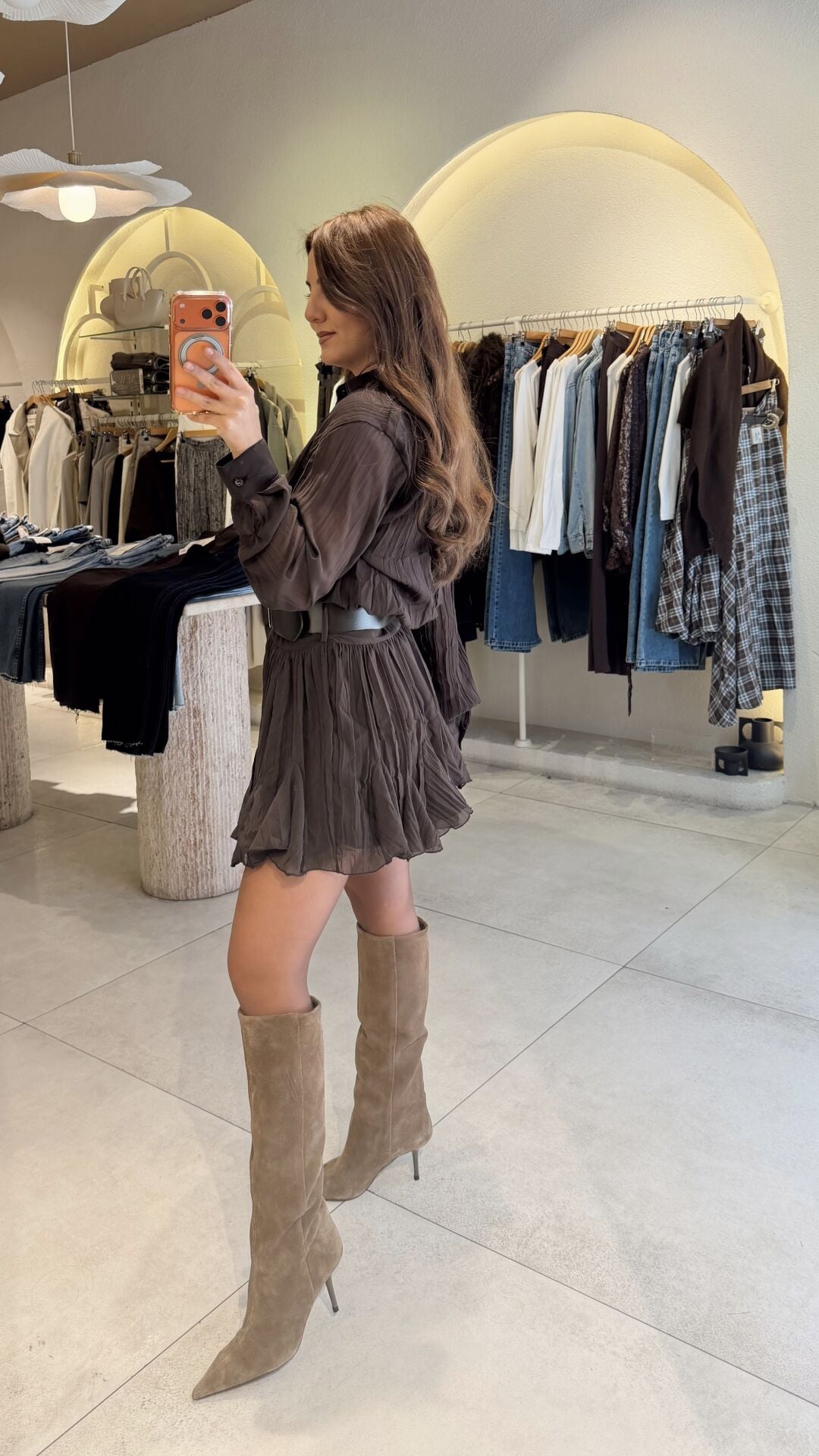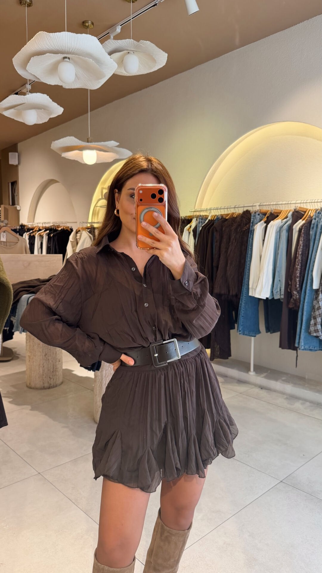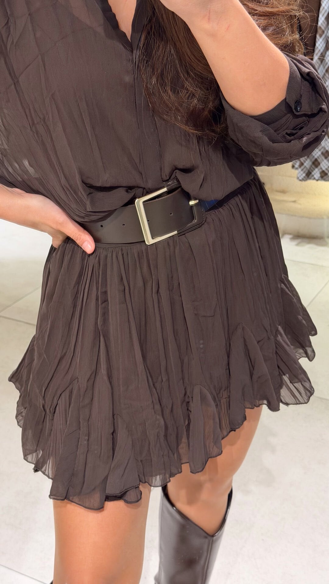 Kemerli Bluzlu Elbise Kahve