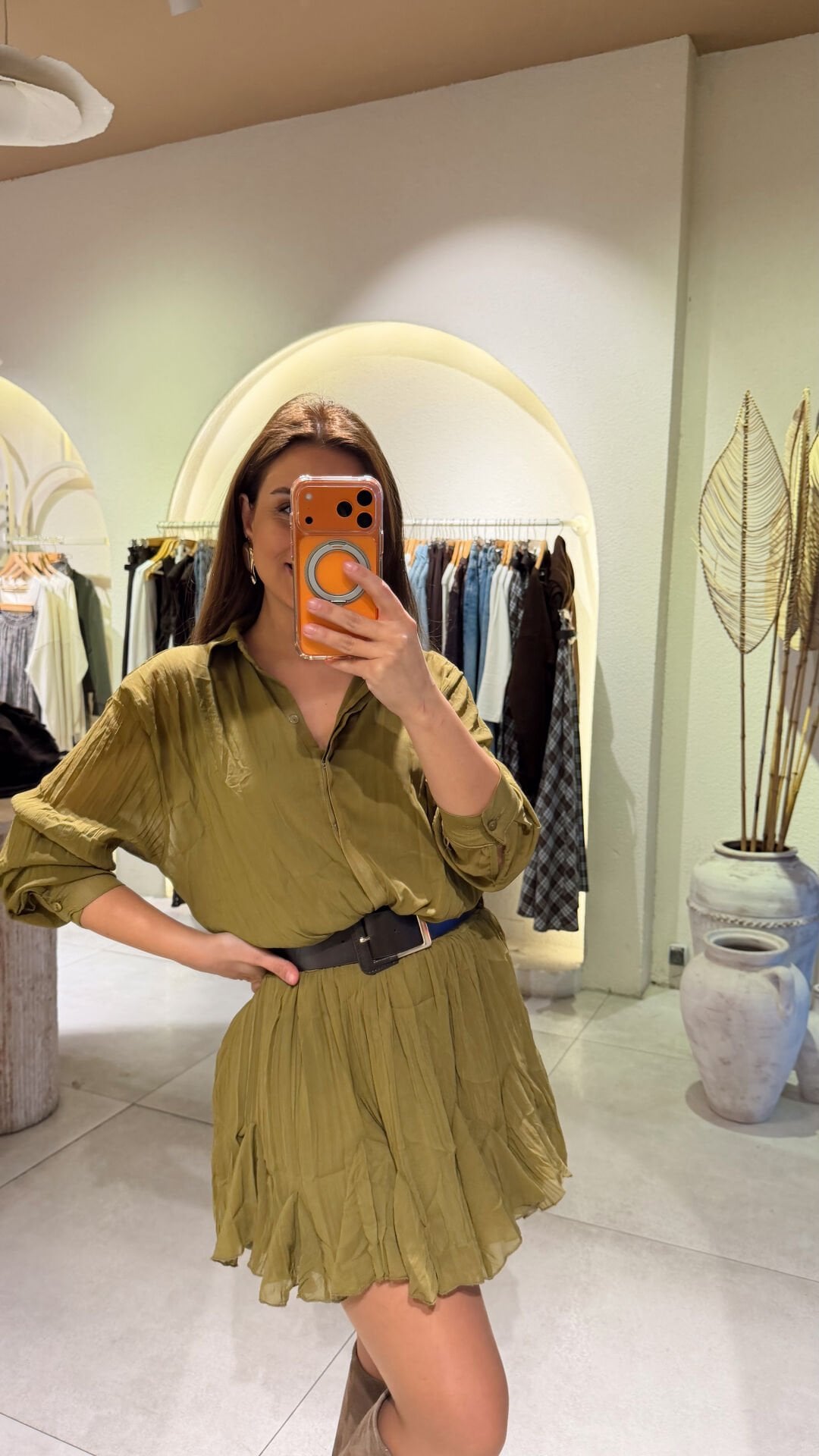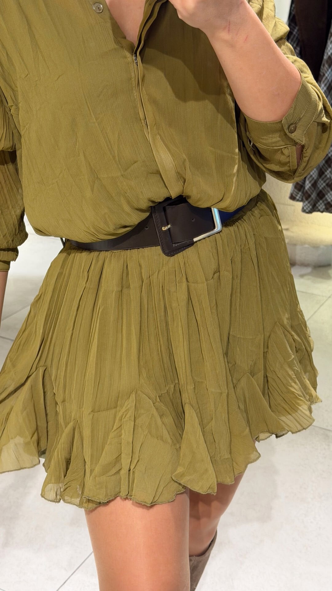 Kemerli Bluzlu Elbise Yeşil