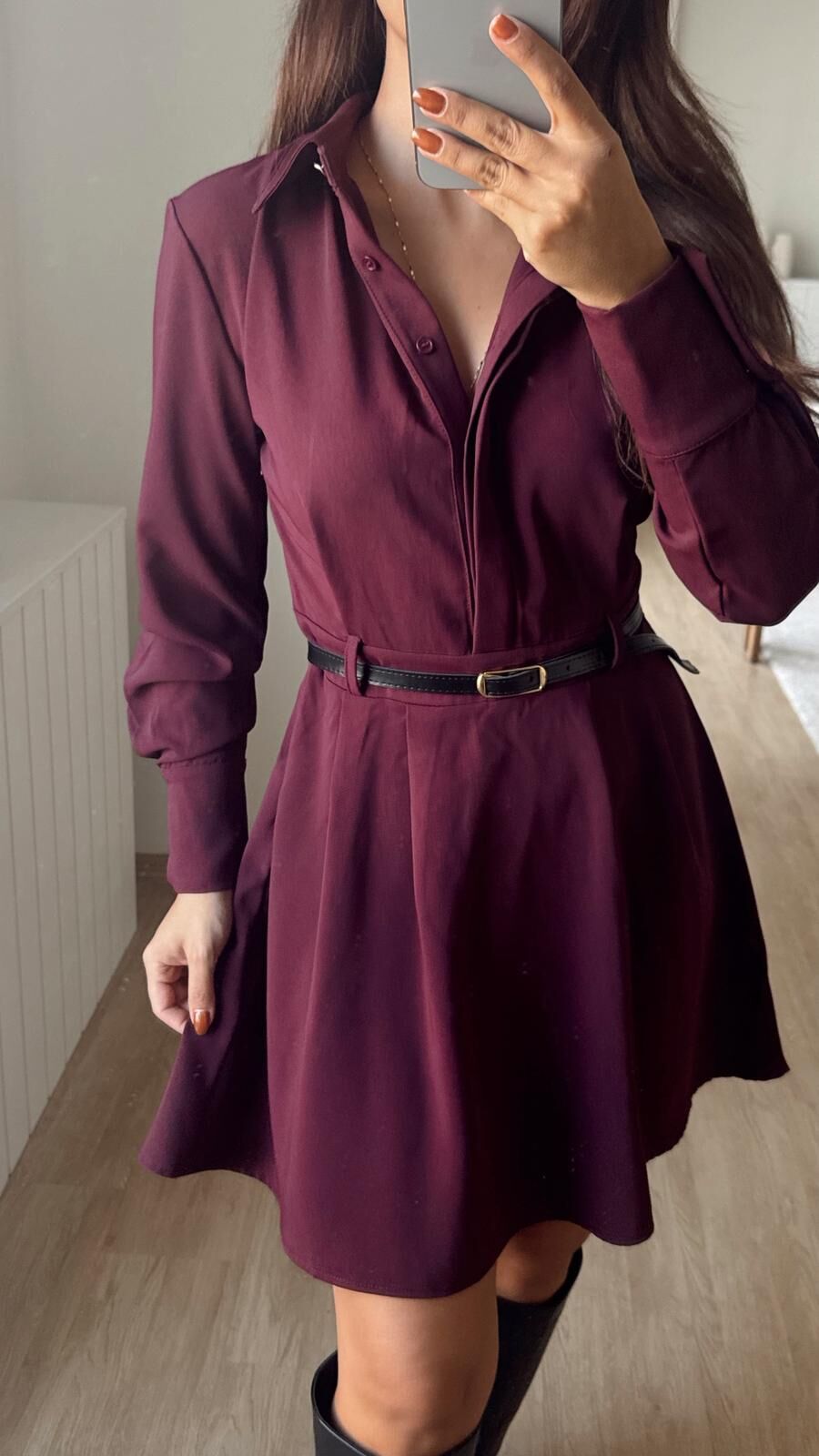 Kemerli Bordo Elbise